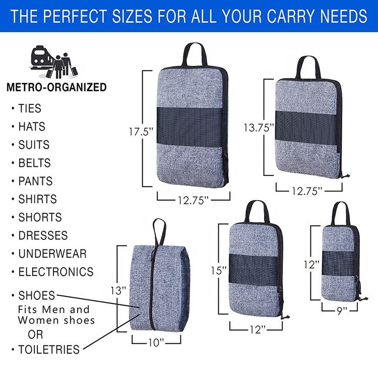 | Articolo | 5 set di cubi da imballaggio leggeri organizer per valigie da viaggio con borsa per scarpe più in meno spazio |