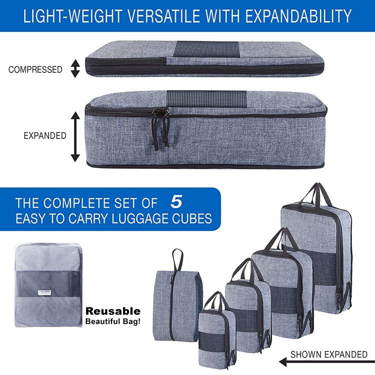 5 set di cubi da imballaggio leggeri organizer per valigie da viaggio con borsa per scarpe più in meno spazio