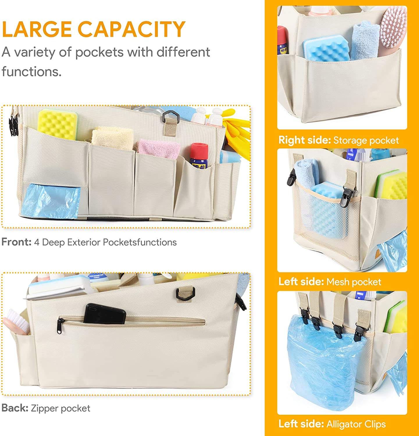 Casa / Prodotti / Borsa degli attrezzi / 600D Borsa portatile per la pulizia e la finitura dell'hotel indossabile Kit di pulizia pieghevole indossabile Borsa portautensili pulita