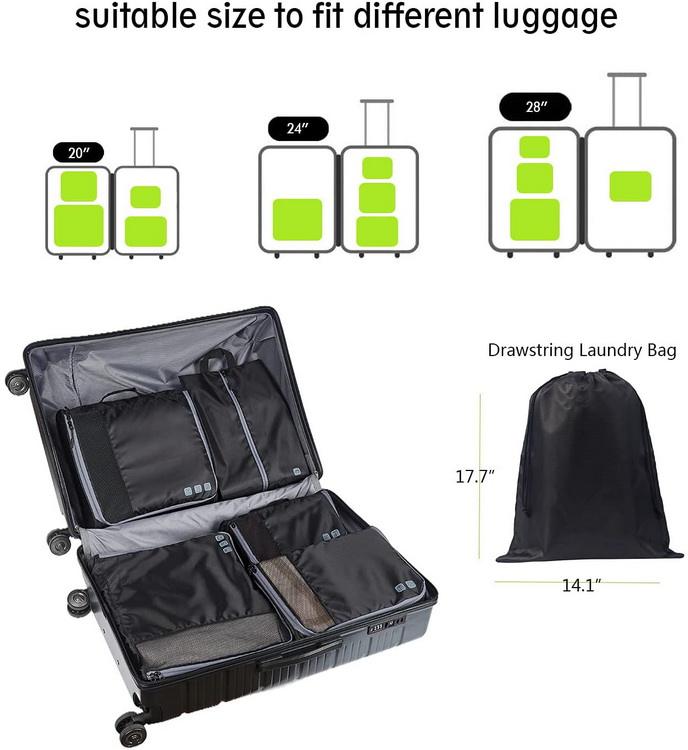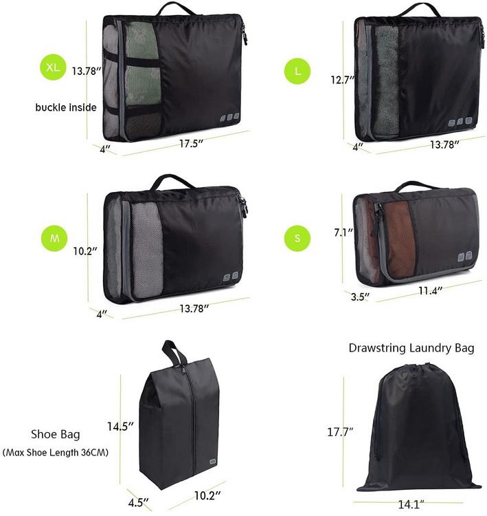 7 Impostare i cubi di imballaggio dell'organizzatore della valigia cubi di imballaggio di vendita calda per il logo personalizzato di viaggio