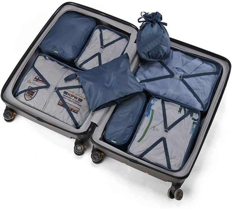 Set di organizer da viaggio personalizzati Set di cubi da imballaggio 7 pezzi Set di organizzatori per l'imballaggio dei bagagli con borsa per scarpe e borsa da toilette
