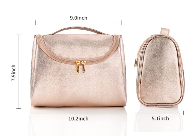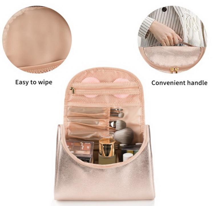 Astuccio cosmetico in pelle PU oro rosa di lusso Borsa per il lavaggio della toilette per l'organizzatore della toilette per il trucco per le ragazze delle donne