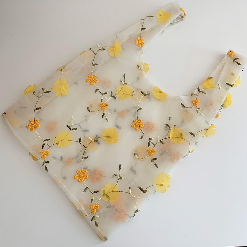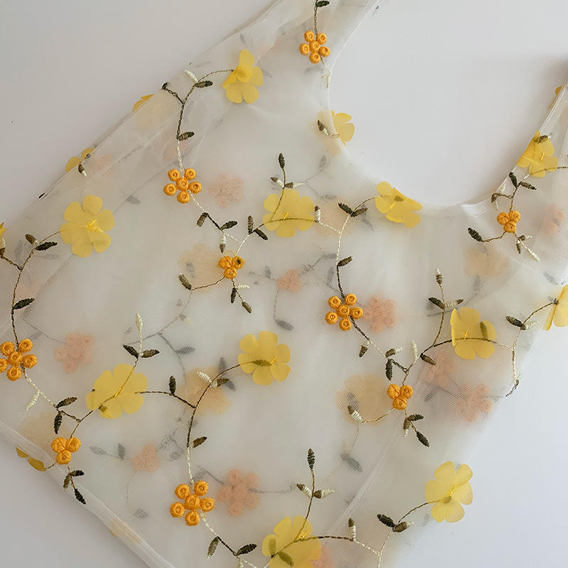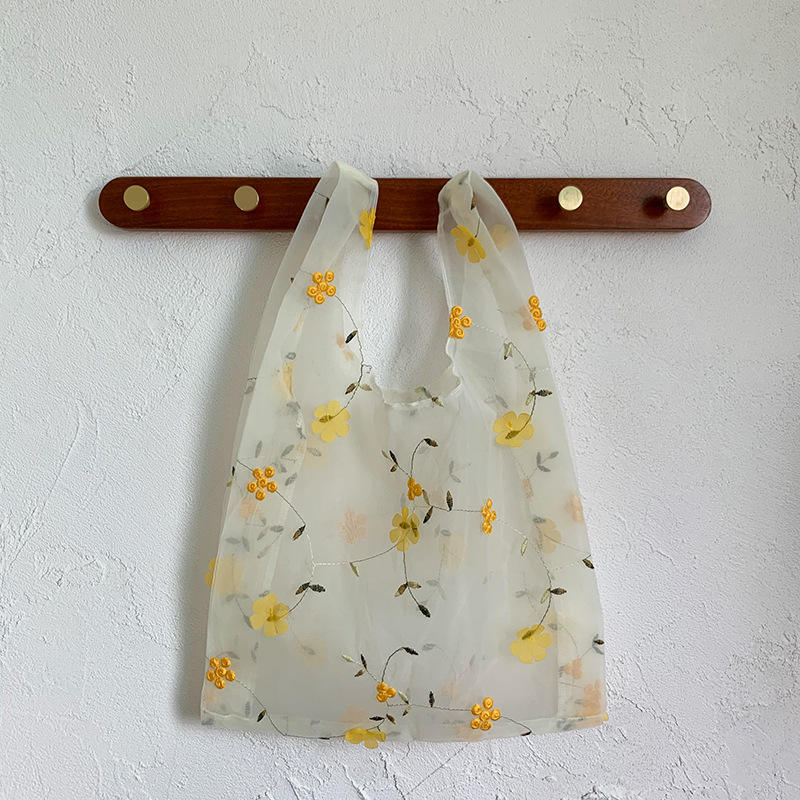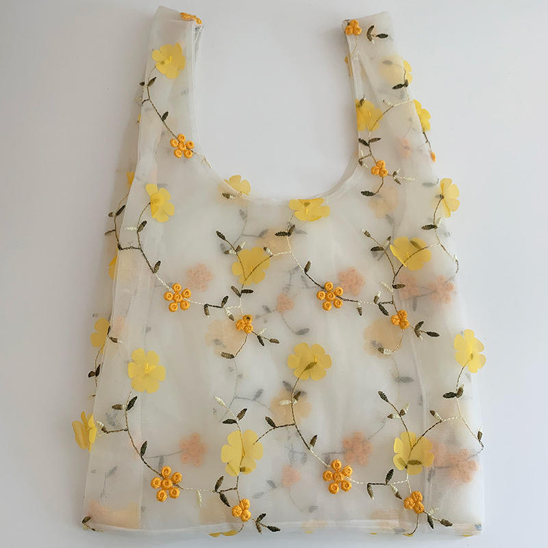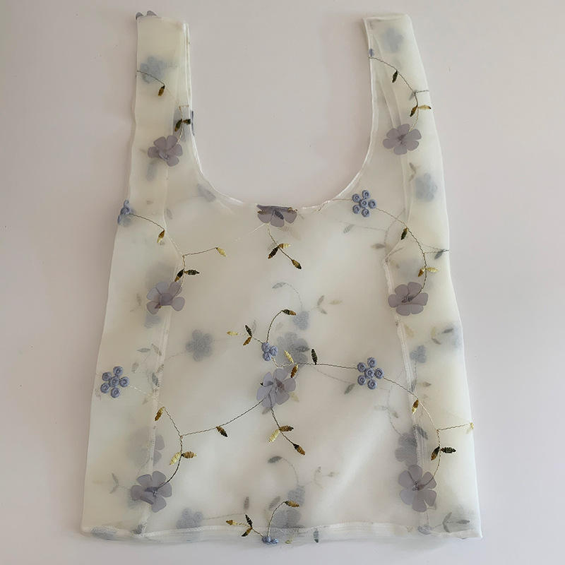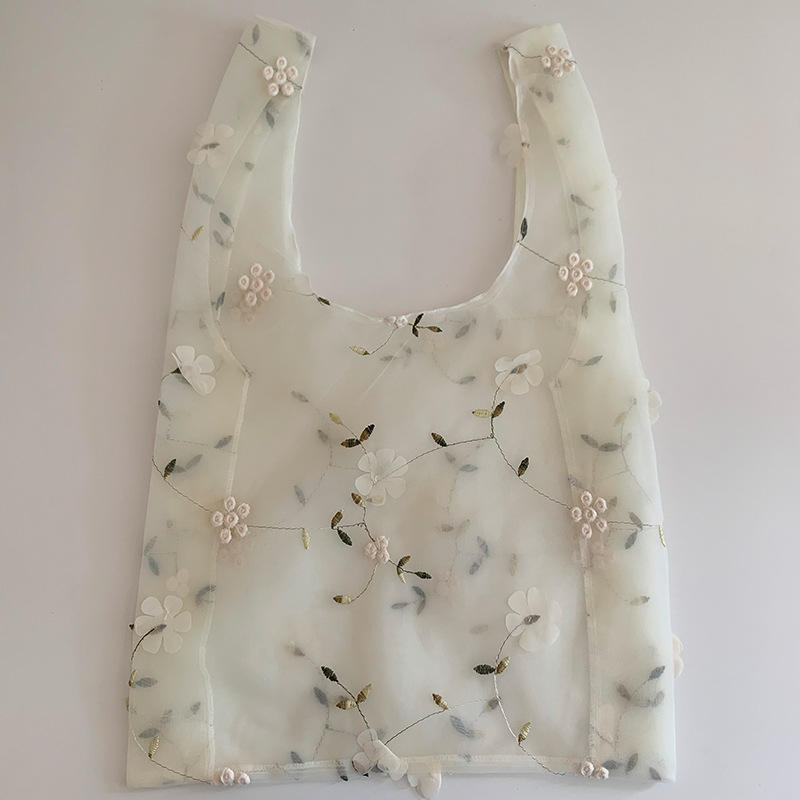 | Bella borsa tote in organza decorativa con fiori ricamati Borsa per la spesa quotidiana da donna leggera per ragazze alla moda | |