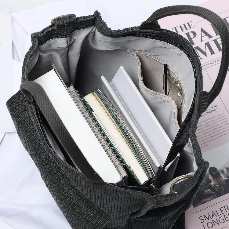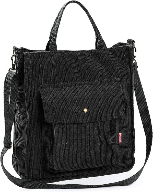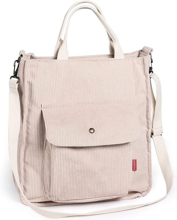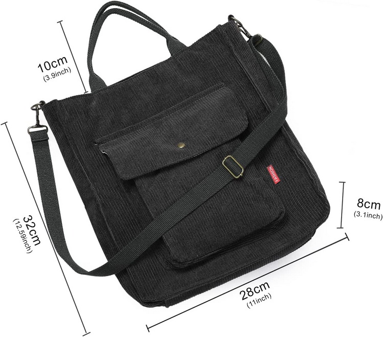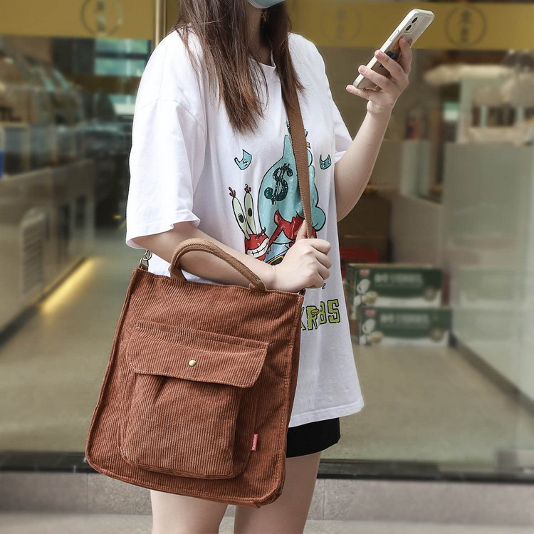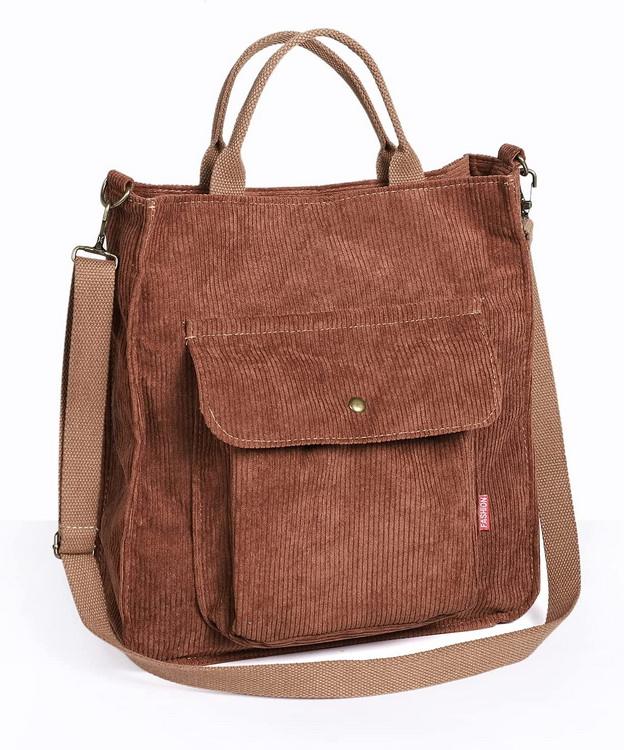 | Borsa tote a tracolla in cotone a mano in velluto a coste | ||