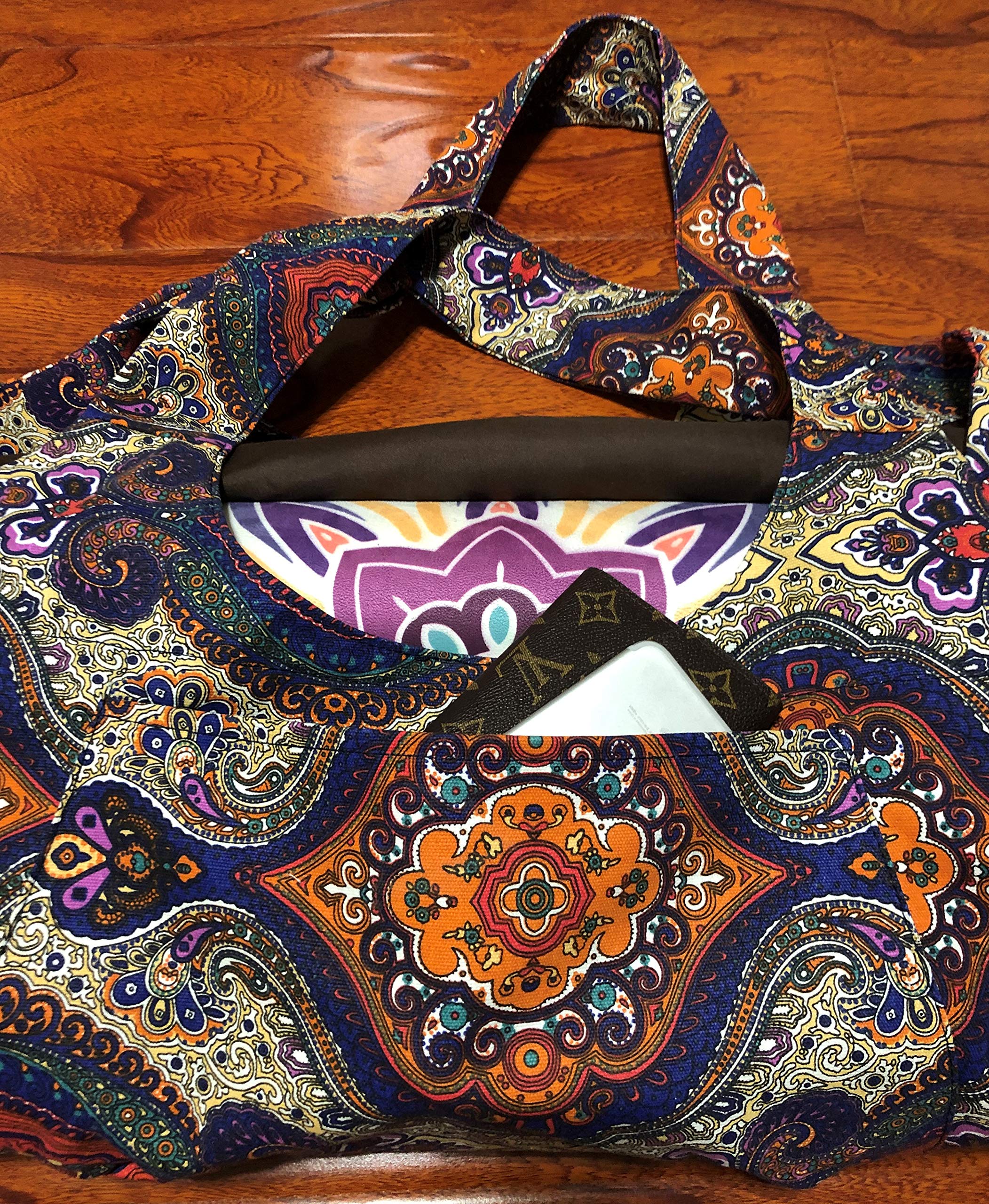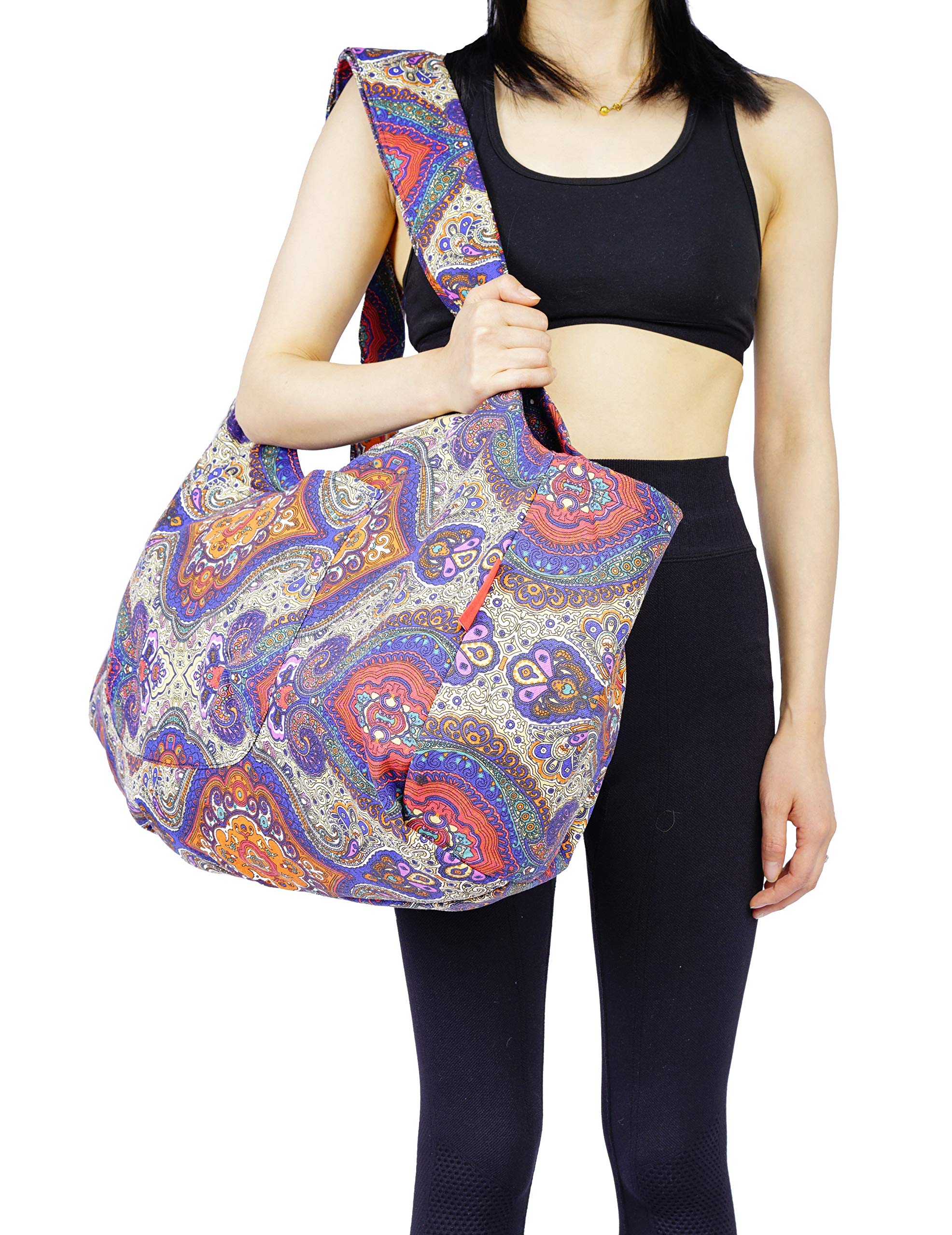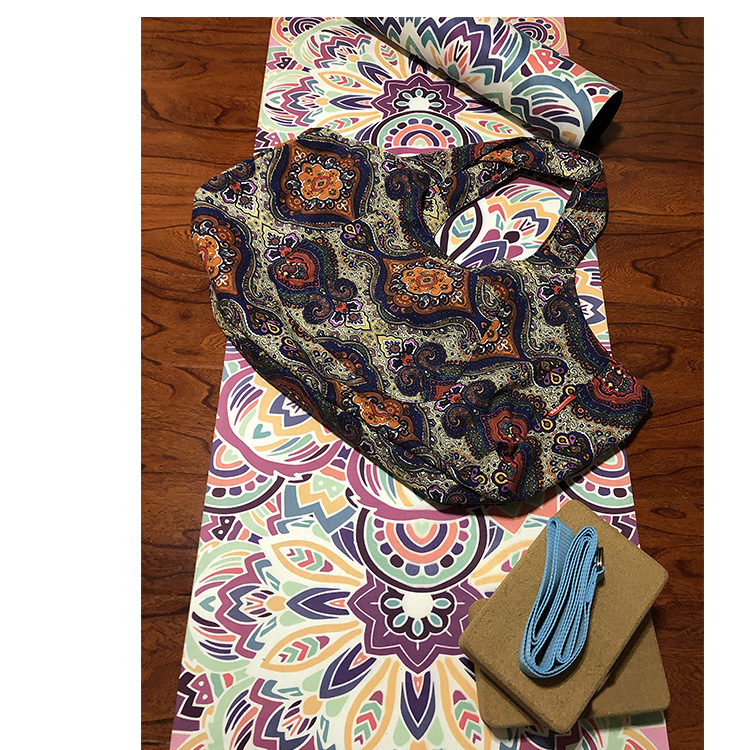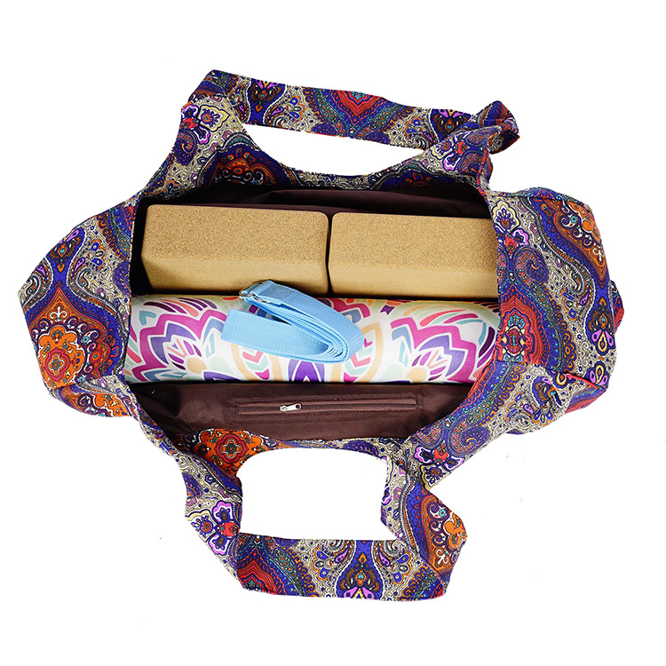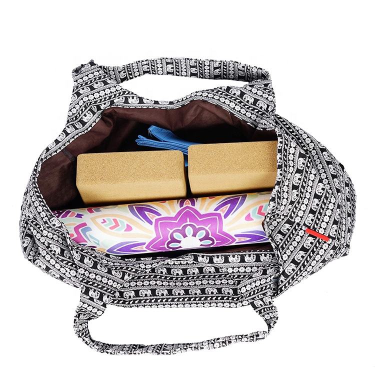 Borsa a tracolla per supporto per tappetino da yoga in tela di cotone riciclabile di nuovo design Borsa da trasporto per tappetino da yoga con motivo personalizzato