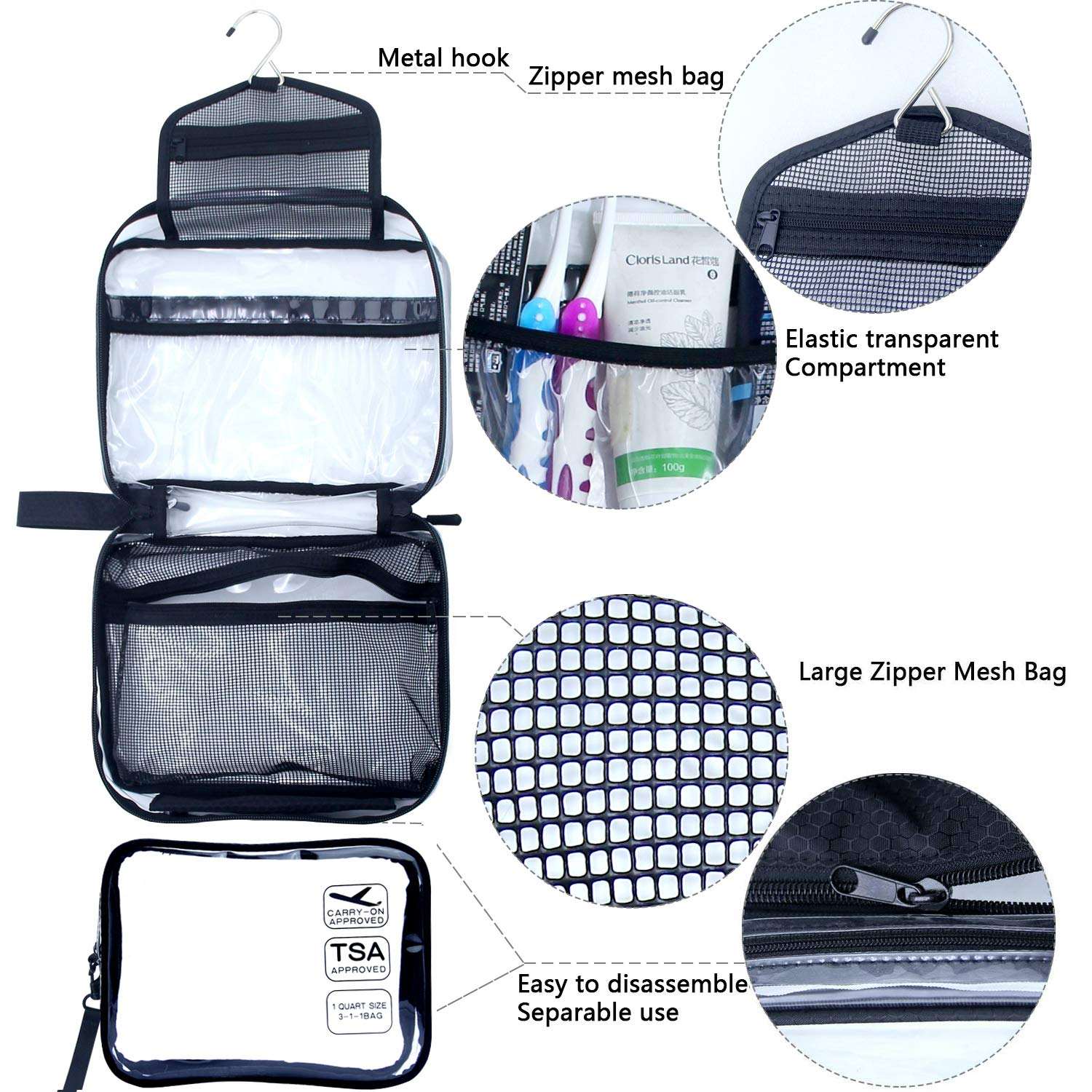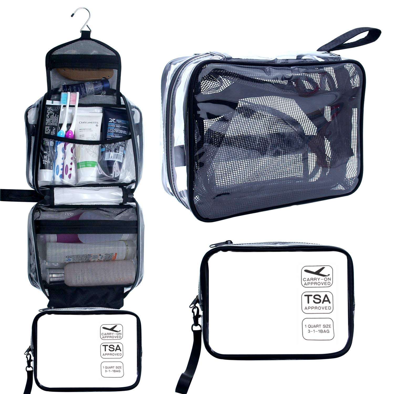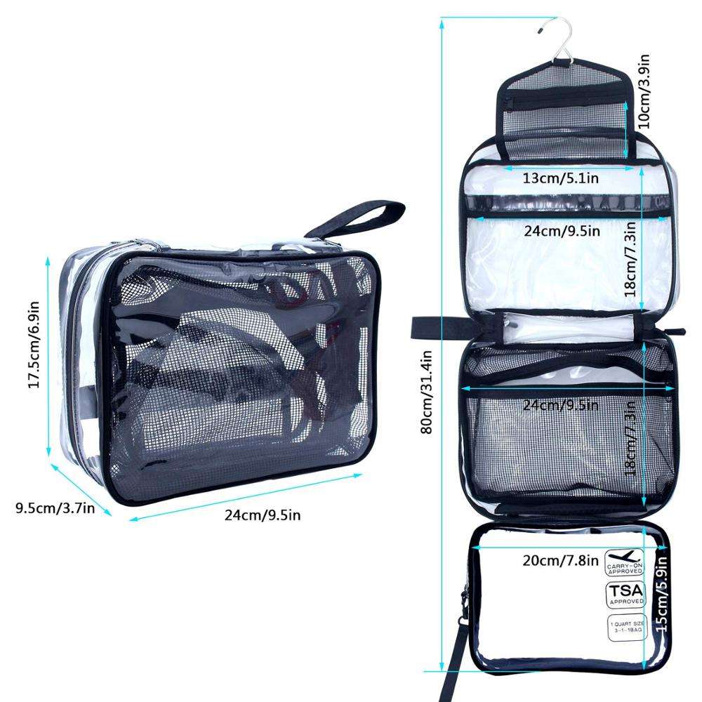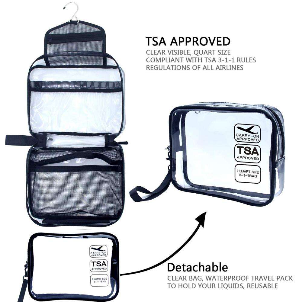 Borsa da toilette da appendere, borsa da toilette da viaggio trasparente con piccola borsa trasparente rimovibile approvata dalla TSA Compagnia aerea 3-1-1 Carry On Conforme Ba