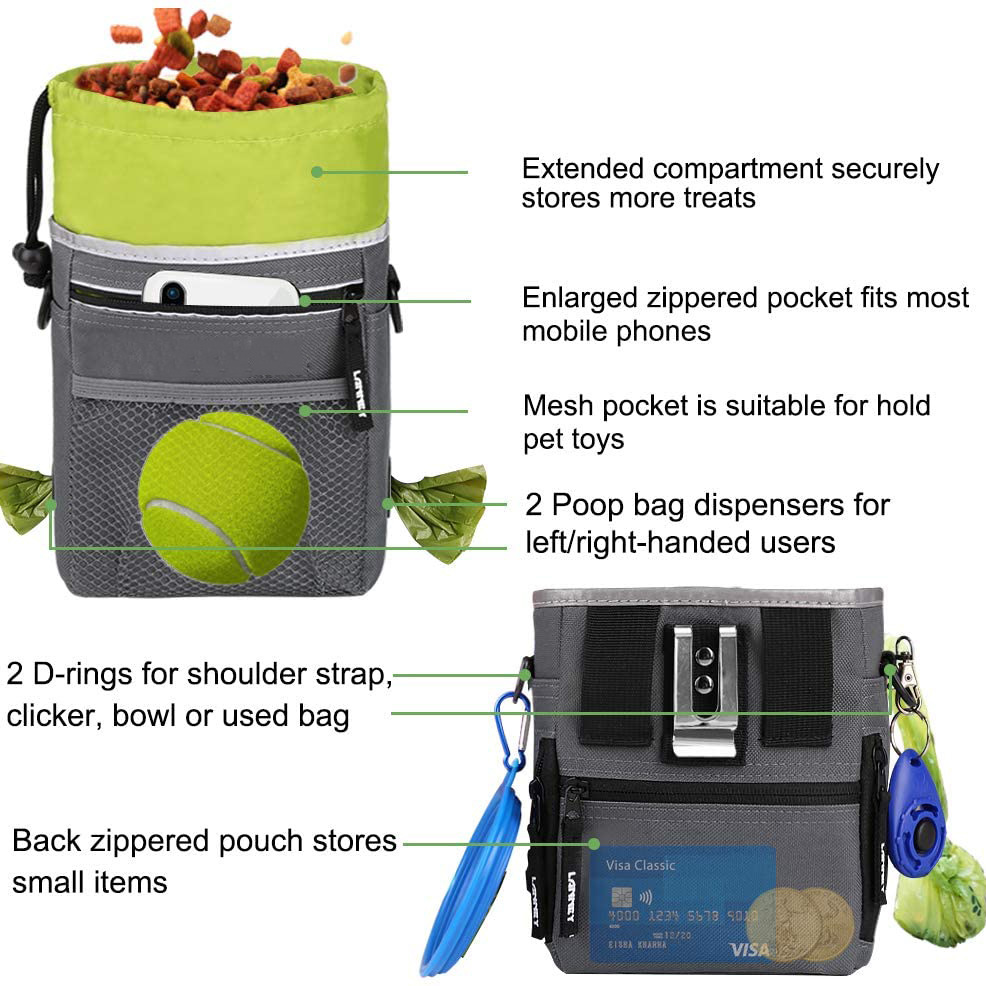 | Nome | Borsa per cani di grande capacità Borsa per addestramento per animali domestici con cintura Sacchetti per snack alimentari per cani da viaggio | ||||||