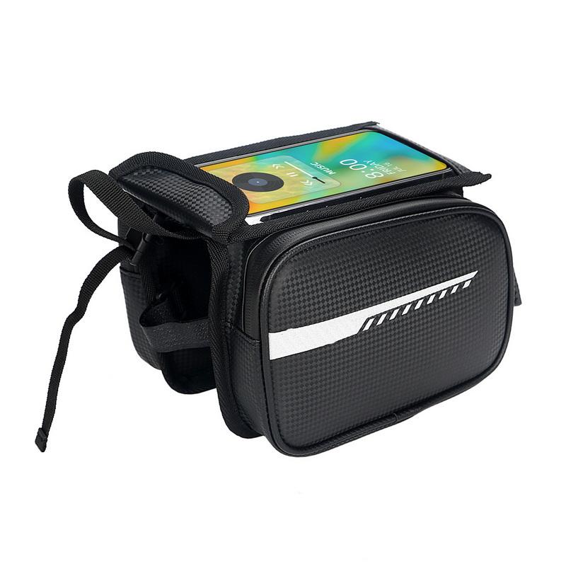 Casa / Prodotti / Borsa da bicicletta / Borsa per telaio anteriore per bici in pelle PU impermeabile per esterni Borse per tubo superiore per bicicletta con supporto per telefono cellulare per ciclismo