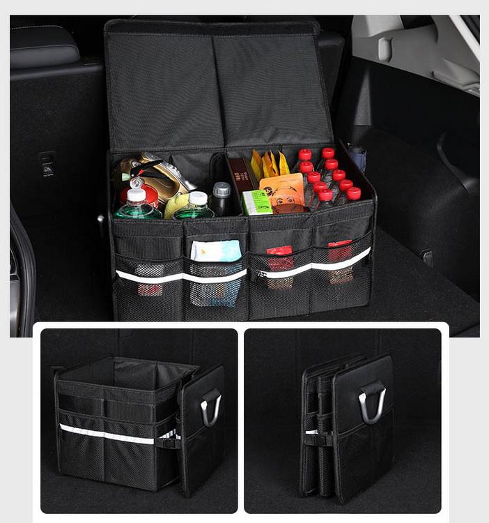 Casa / Prodotti / Borsa dell'organizzatore / Organizzatore di auto / Borsa portaoggetti per auto OEM, borsa extra large per sedile auto, cinturino riflettente, pieghevole, pieghevole, bagagliaio universale