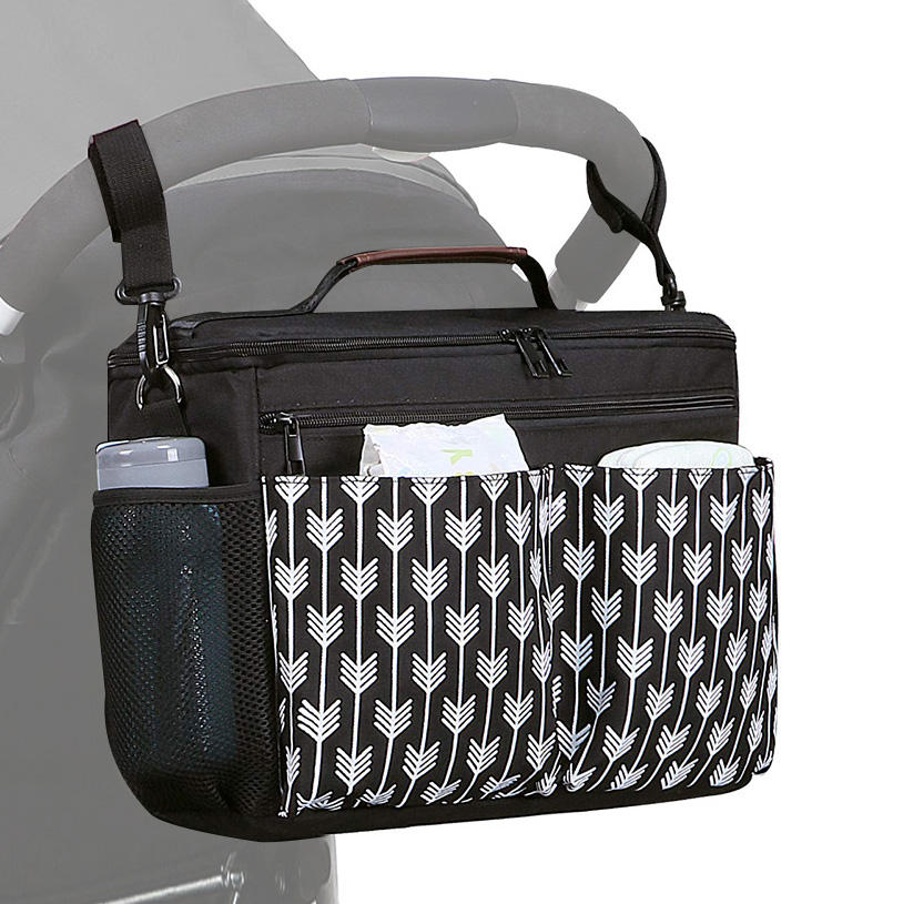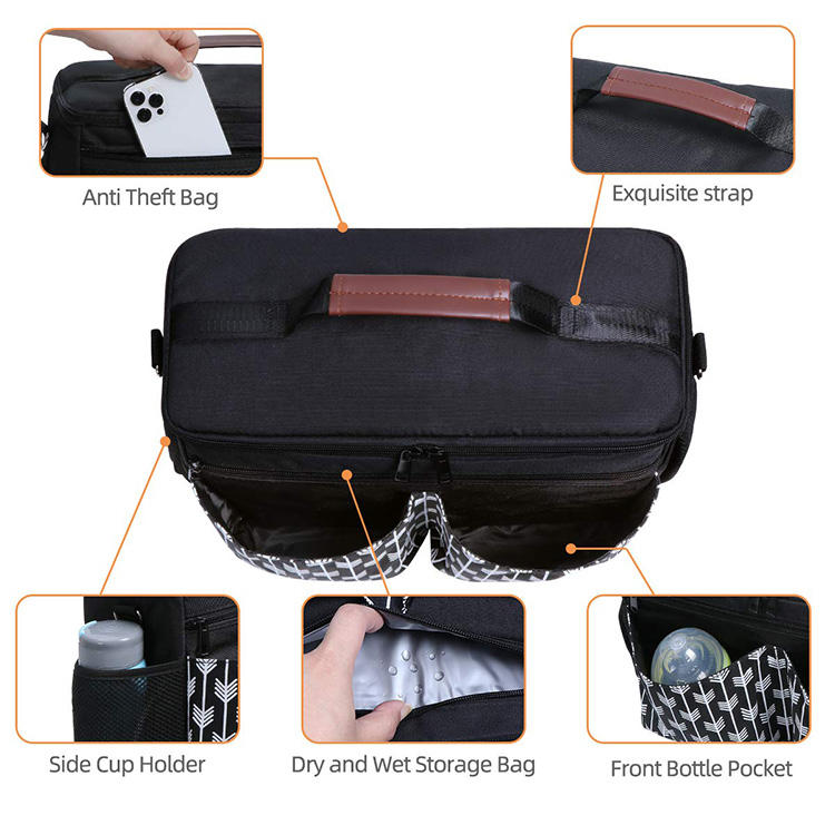 Casa / Prodotti / Zaino / Borsa per pannolini / Borsa portaoggetti per passeggino di grande capacità di lusso Borsa per pannolini appesa Borsa a tracolla multiuso per mamma