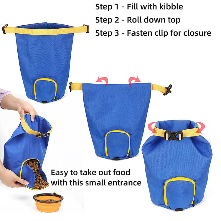 | Borsa portatile impermeabile per snack per alimenti per cani con manico e fibbia Borsa dispenser per alimenti per animali domestici con ciotola | |