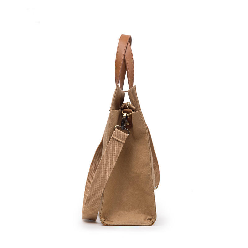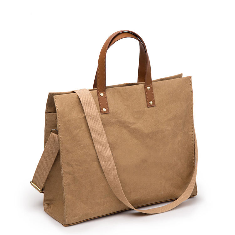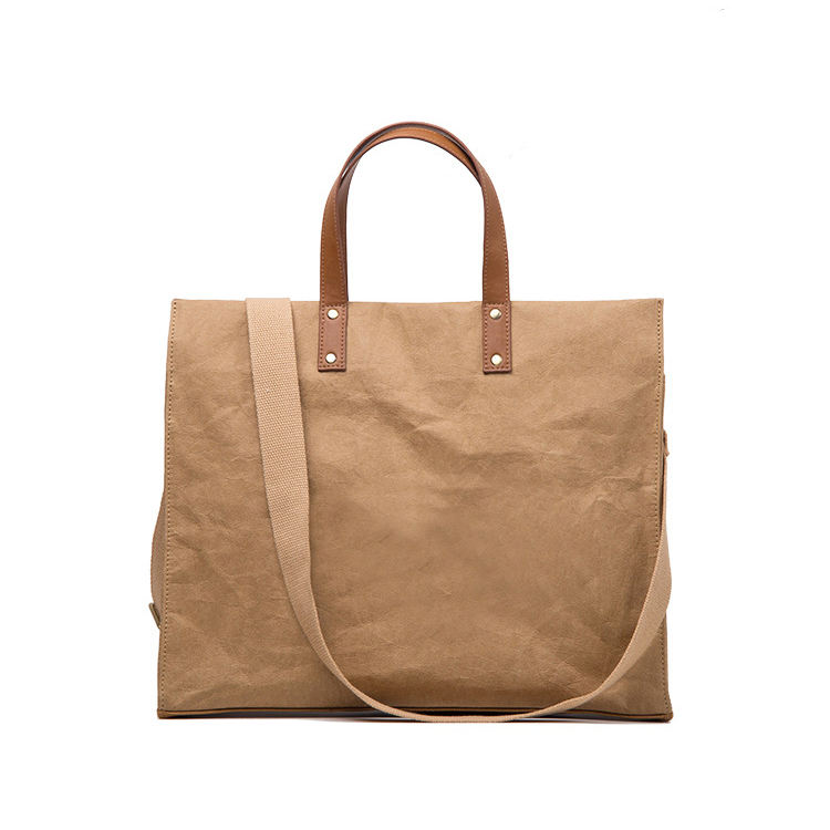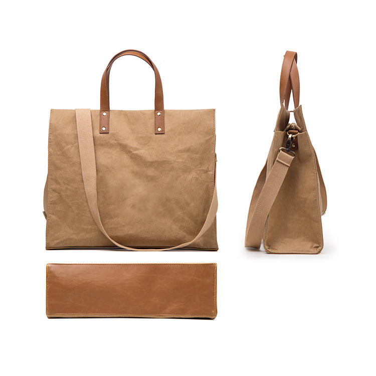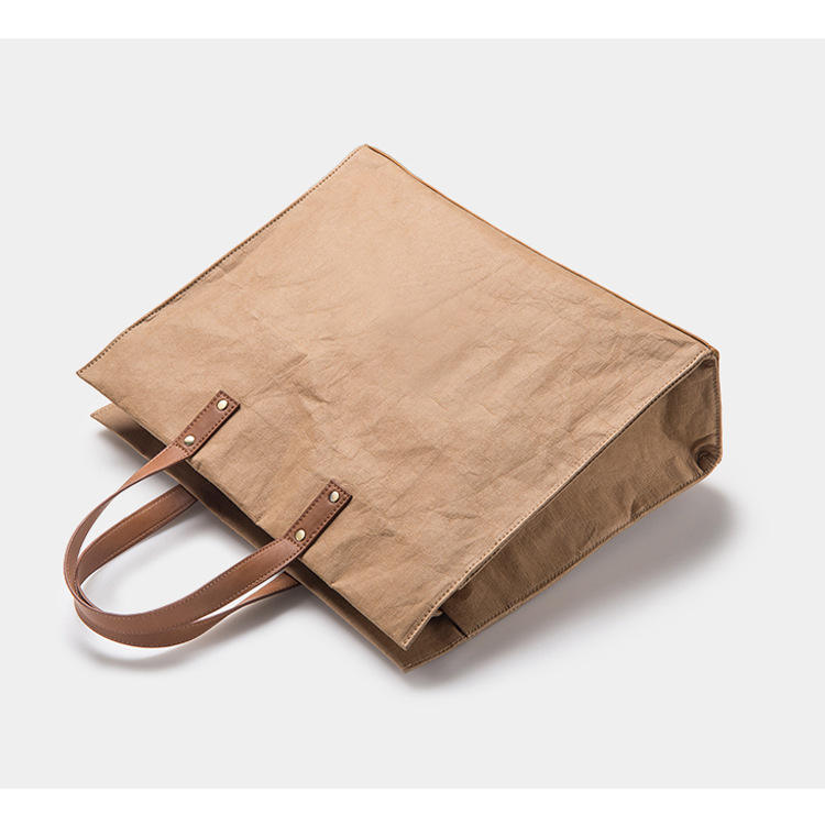 Casa / Prodotti / Sacchetto / Borsa della spesa ecologica / Borsa shopping portatile in carta vintage DuPont TYVEK Paper Washable Kraft Paper Tote Shopper Bag con tracolla