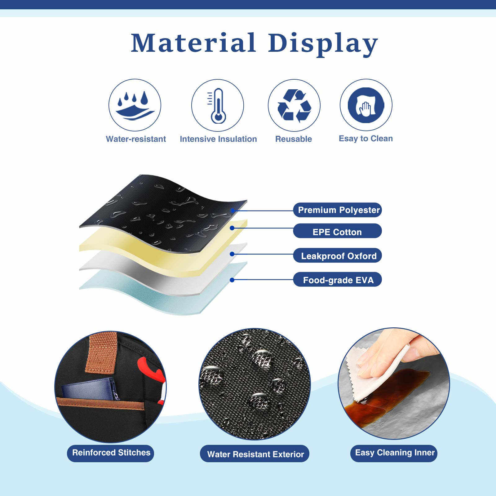 | Materiale | Poliestere 600D/tela + schiuma EPE + PEVA, o foglio di alluminio | ||||||