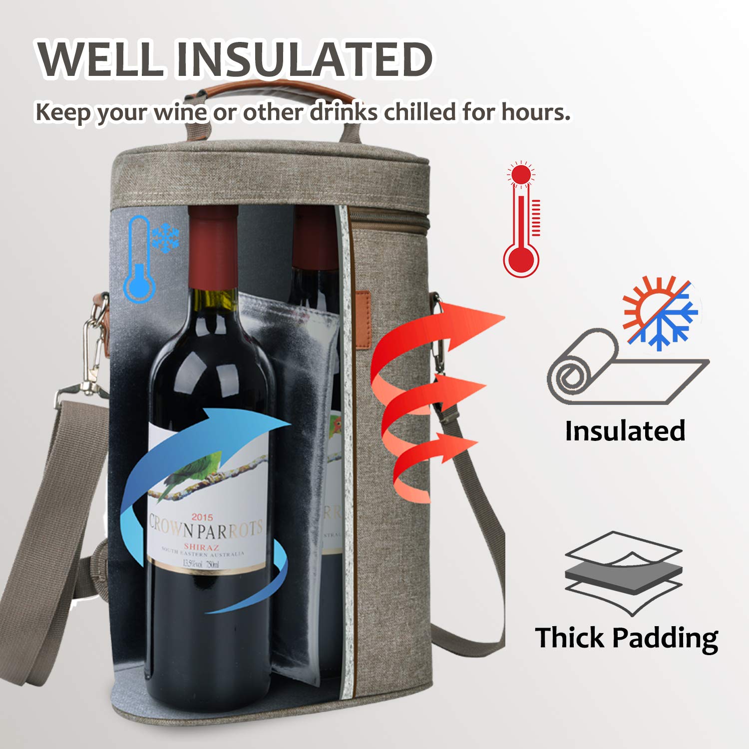 | Borsa termica per vino imbottita isolata stampata 600d Borsa termica per vino multifunzione da 2 bottiglie Borsa termica per vino Uomo Donna Outdoor | ||