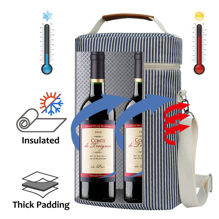 Borsa termica per vino da viaggio a prova di perdite da 6 bottiglie Borsa termica per vino con manici e tracolla regolabile