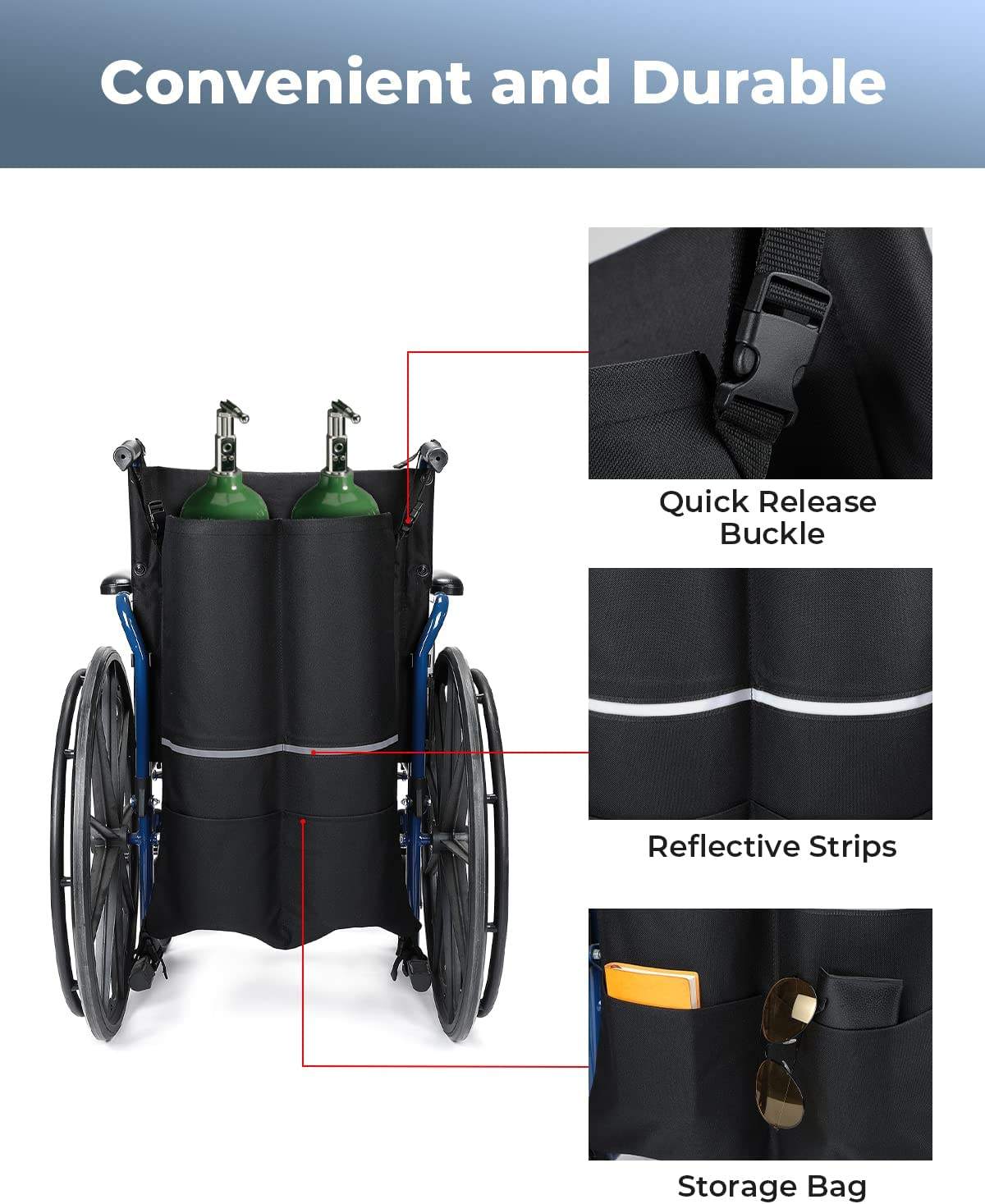 Casa / Prodotti / Borsa degli attrezzi / Borsa universale per bombole di ossigeno per scooter per sedie a rotelle con fibbie