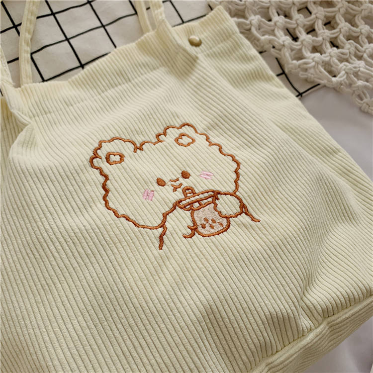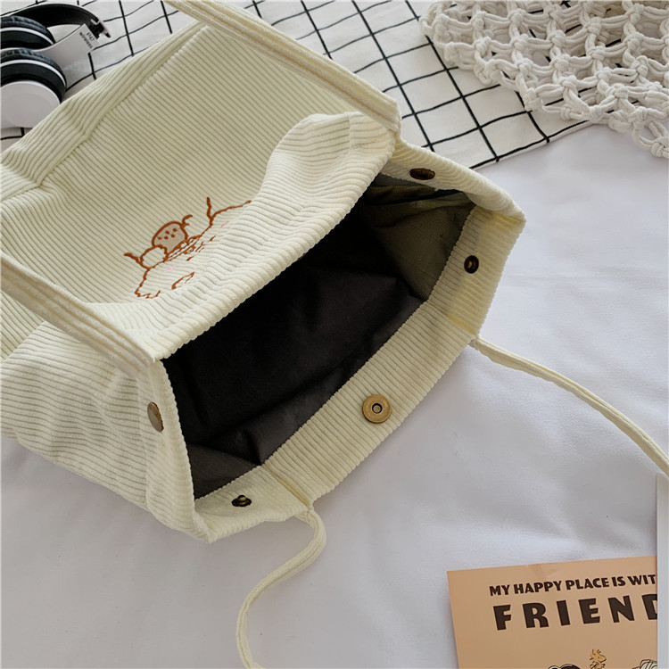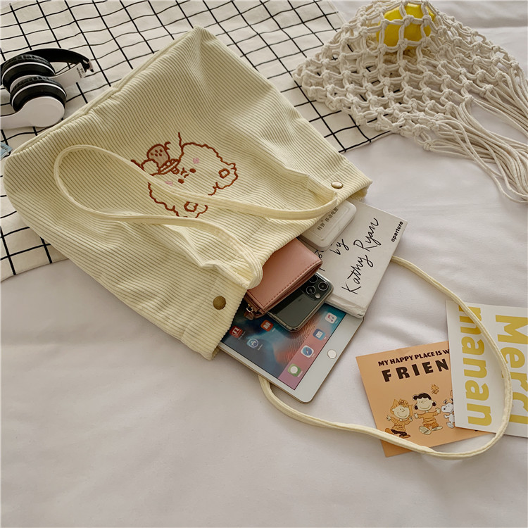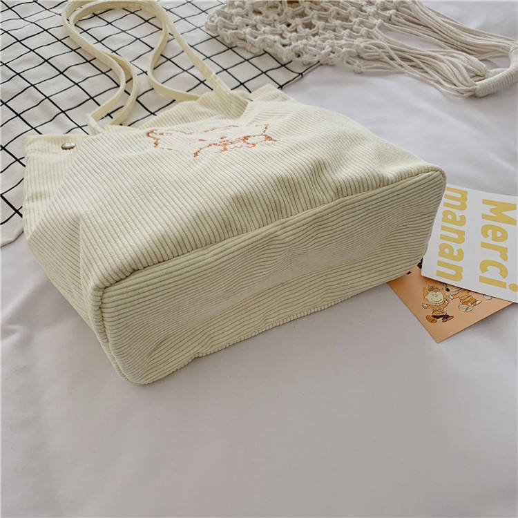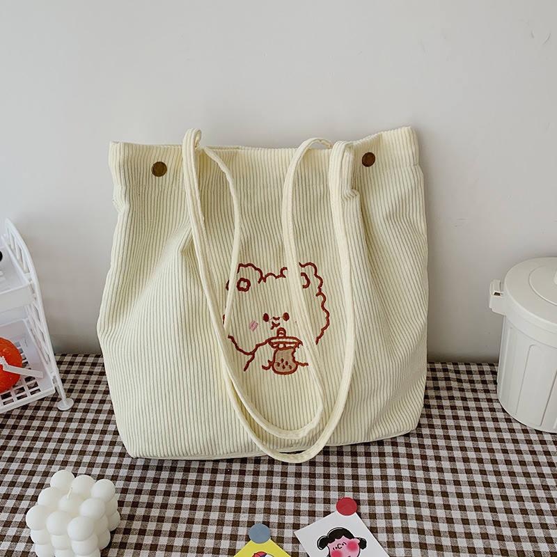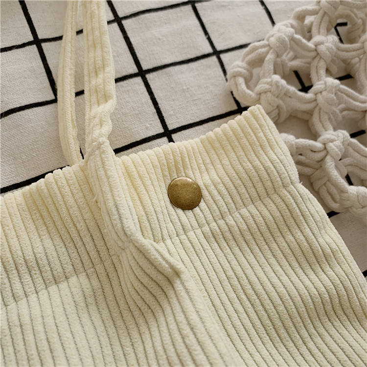 | Borse di velluto a coste bianche borsa a tracolla della spesa borse di velluto a coste per il lavoro di shopping scolastico | ||