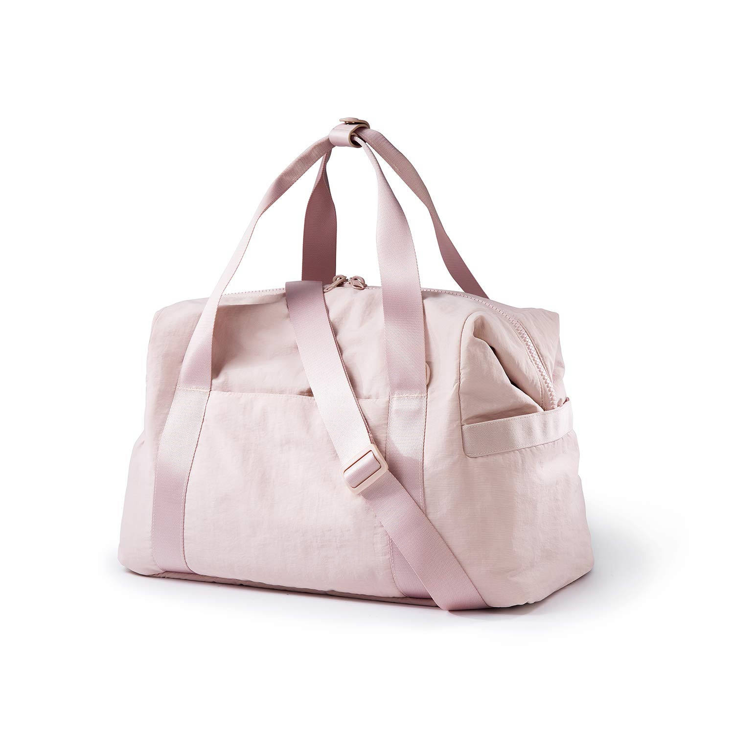 borsa da palestra sportiva da esterno in nylon rosa impermeabile da donna con logo personalizzato grande borsa da viaggio per il fine settimana durante la notte con scomparto per scarpe