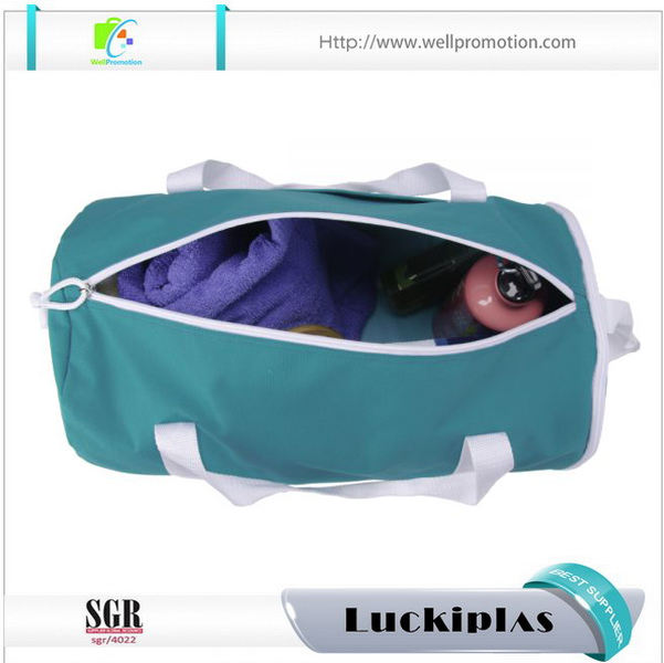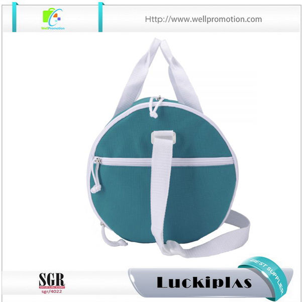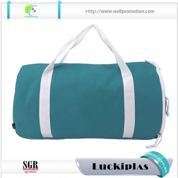 Borsone da viaggio rotondo da donna in tela blu da 12 once con tasca laterale