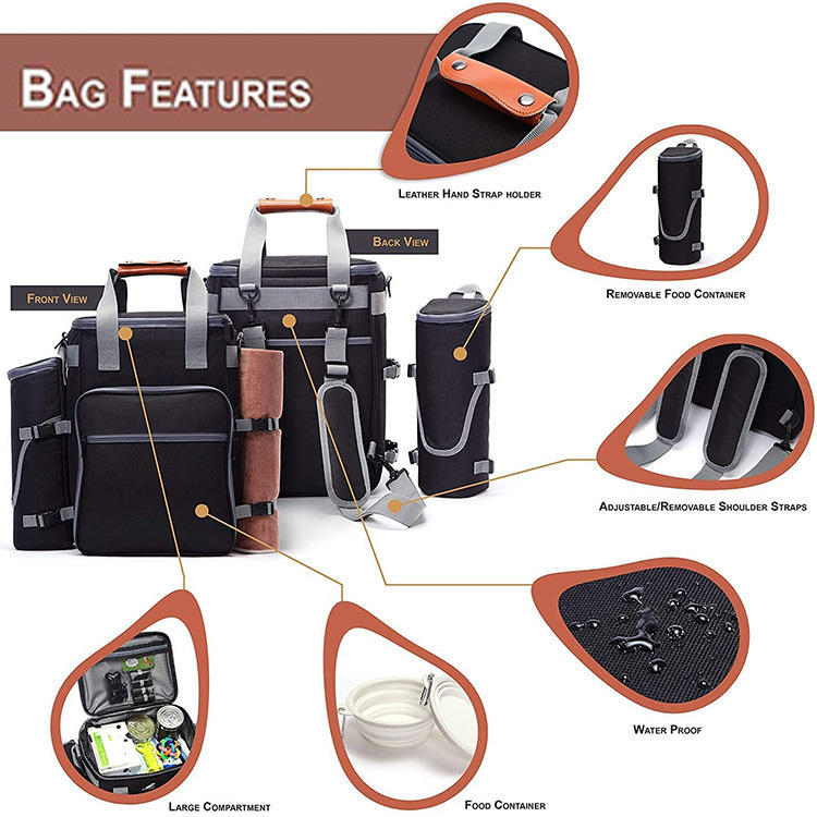 | Camping Travel Outdoor Pet Toys Food Accessories Organizer Bag Zaino multifunzione con contenitore per cibo per cani | |
