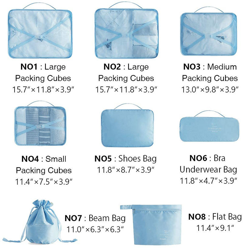 | Nome dell'elemento | Cubo di imballaggio da 8 pezzi impostato per il viaggio | ||||||