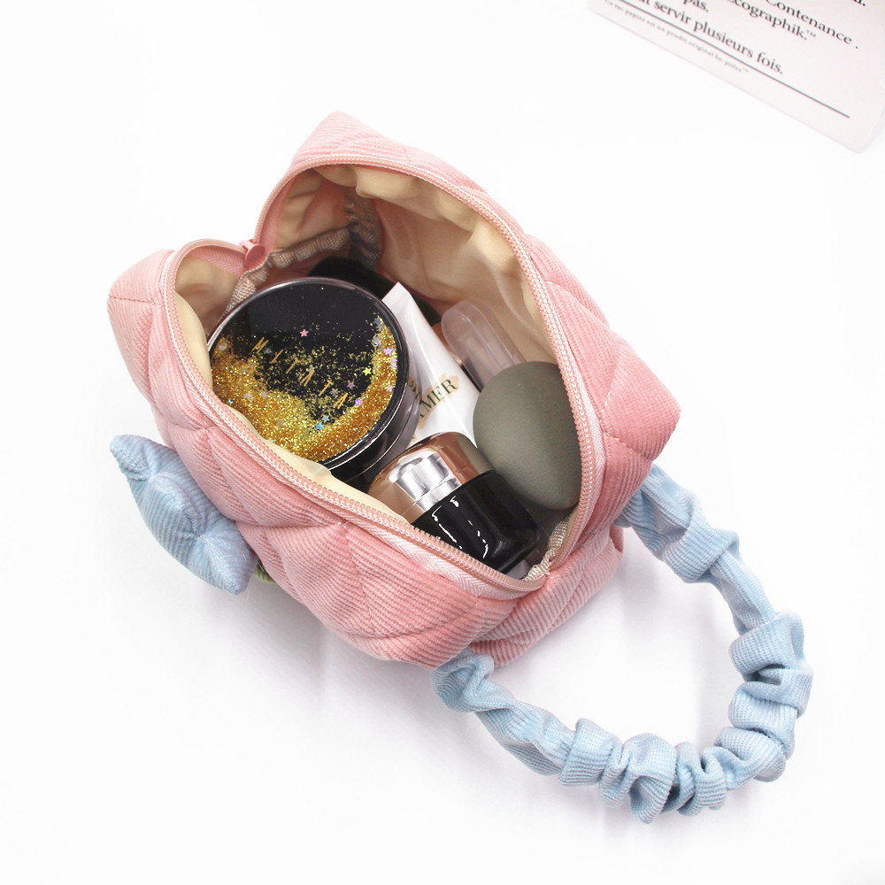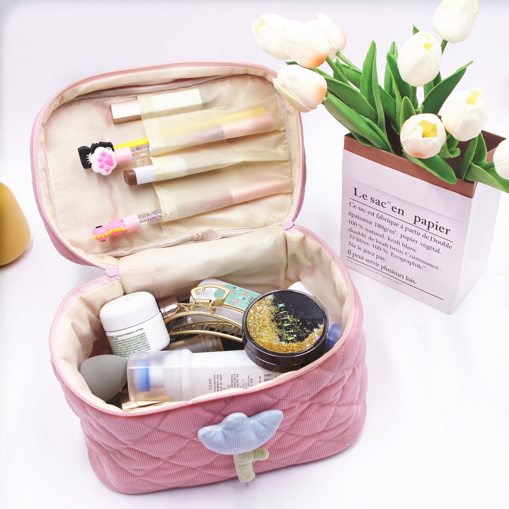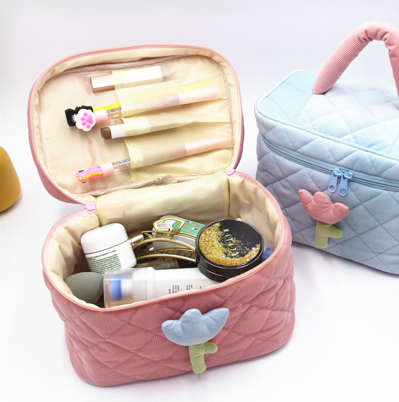 Casa / Prodotti / Borsa per cosmetici e articoli da toeletta / Borsa per cosmetici / Corduroy Tulip grande capacità INS Lovely Makeup Bag Borse cosmetiche per articoli da toeletta portatili da donna
