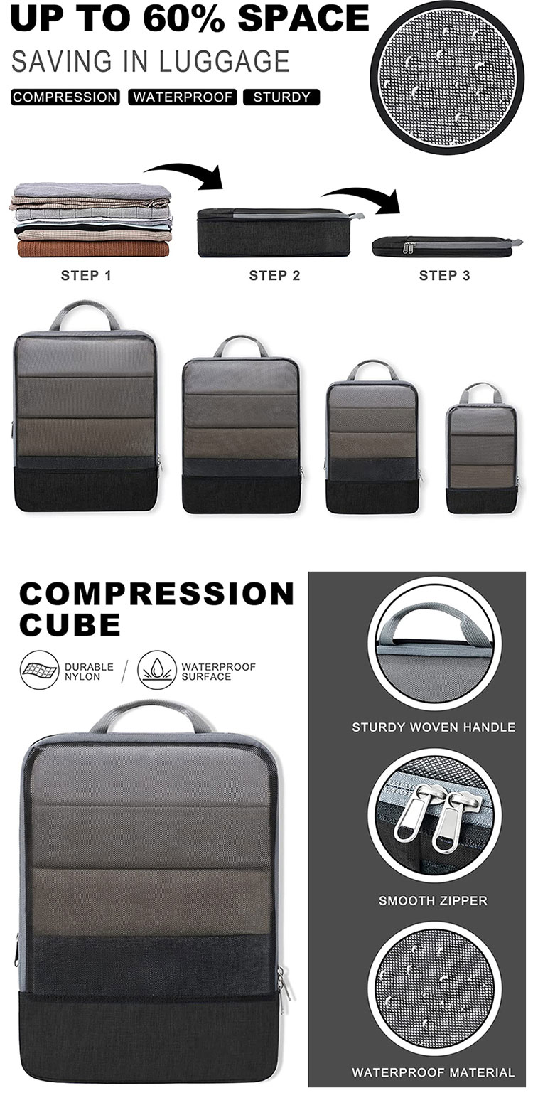 Casa / Prodotti / Borsa da viaggio / Cubi da viaggio / Cubo di imballaggio da viaggio espandibile con cubi di imballaggio a compressione personalizzati da 4 pezzi