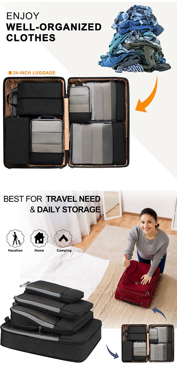 Cubo di imballaggio da viaggio espandibile con cubi di imballaggio a compressione personalizzati da 4 pezzi