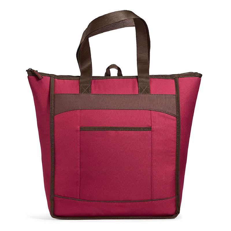 Grande picnic rosso da viaggio per la spesa, cibo, bottiglie di vino, sacchetti per congelatore, grande borsa termica isolata per i viaggi