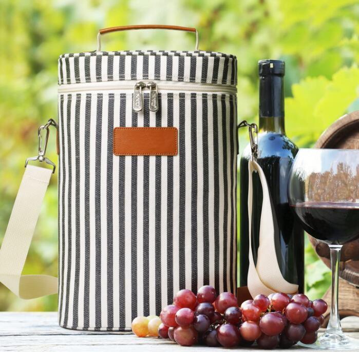 Logo personalizzato a righe picnic viaggio campeggio 2 bottiglie termiche per vino borsa tote termica borsa termica portatile per vino