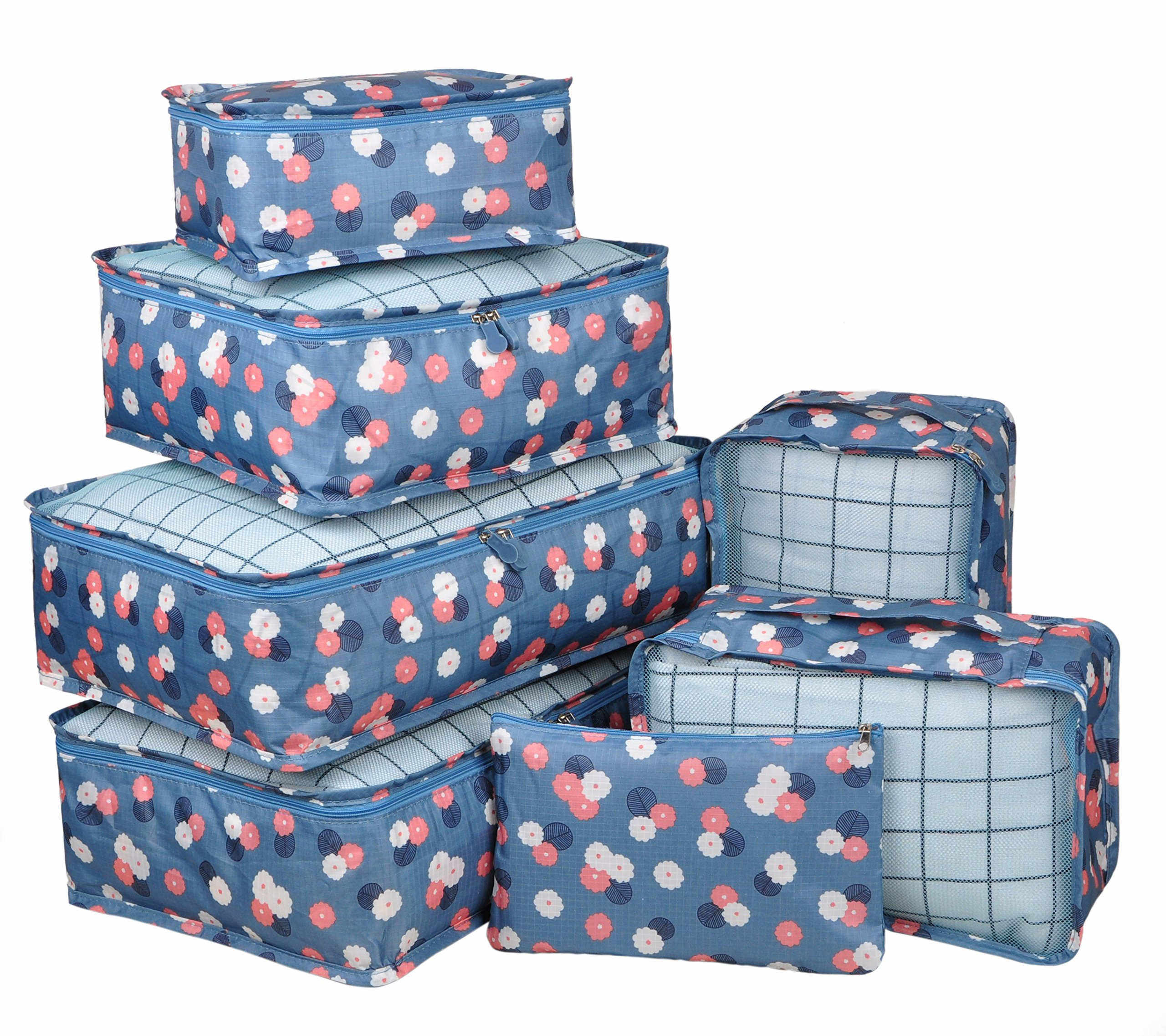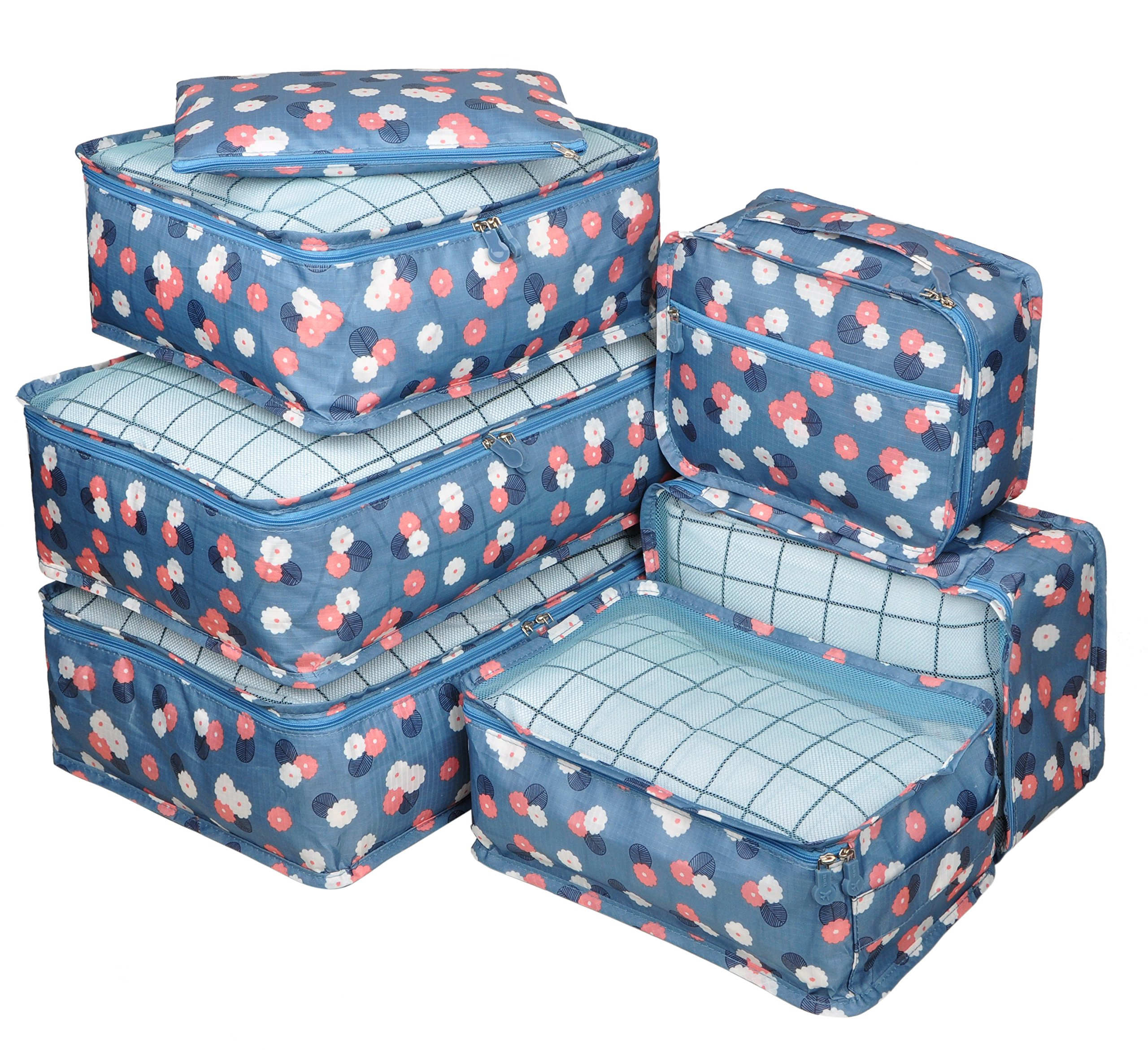 7 pezzi Cubi da imballaggio da viaggio con borsa per scarpe, borsa da toilette, portafoglio e custodia per cavi