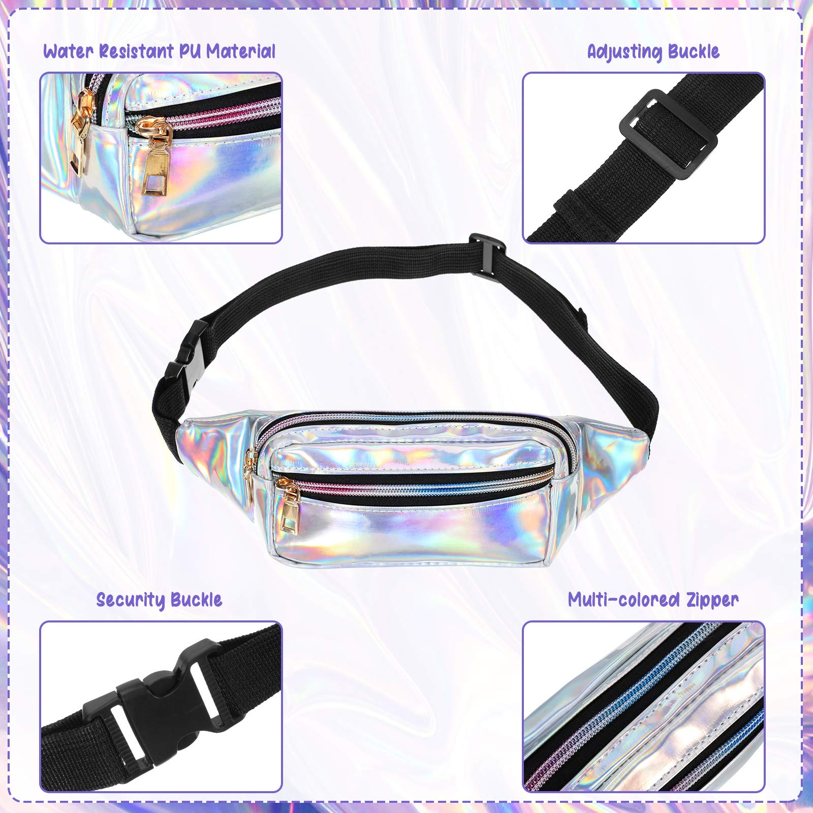 | Marsupio impermeabile Marsupi olografici lucidi Marsupi al neon per donne Festival Feste Viaggi Rave Escursionismo Attività all'aperto | ||
