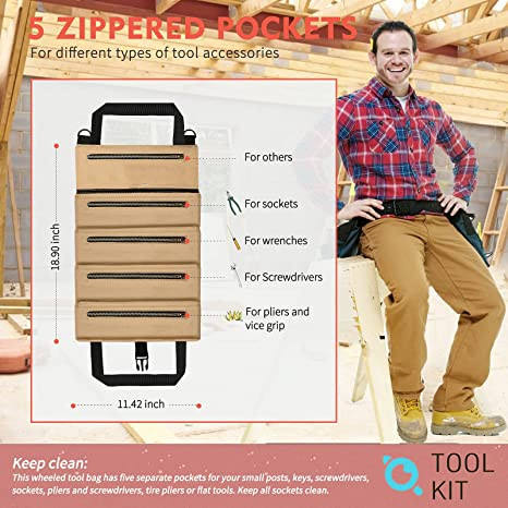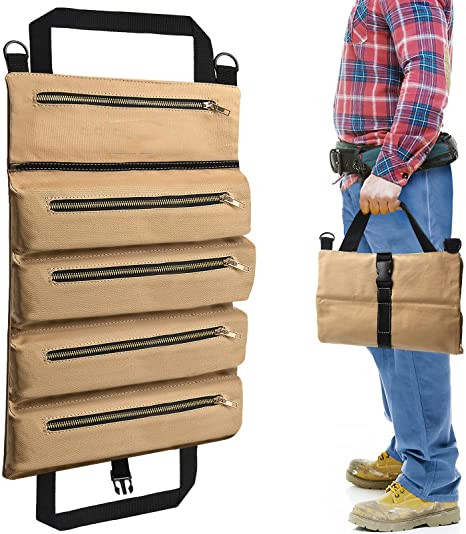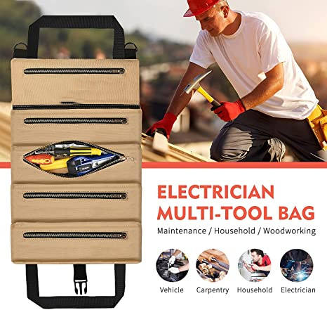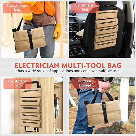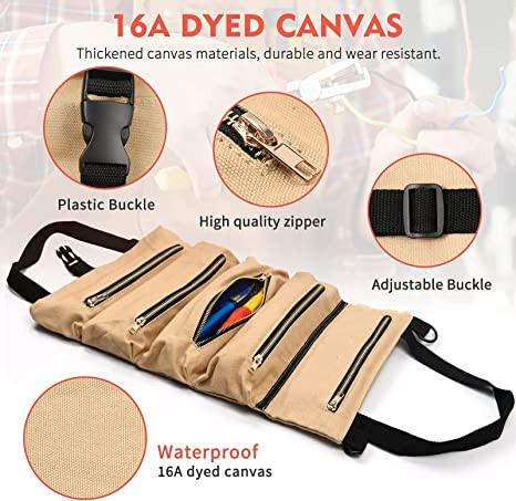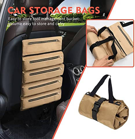 | Multi-Purpose Roll Up Tool Bag Organizer Canvas Storage Hanging Rolling Pouch Kit per chiave inglese Moto Auto Cacciavite Cavi | ||