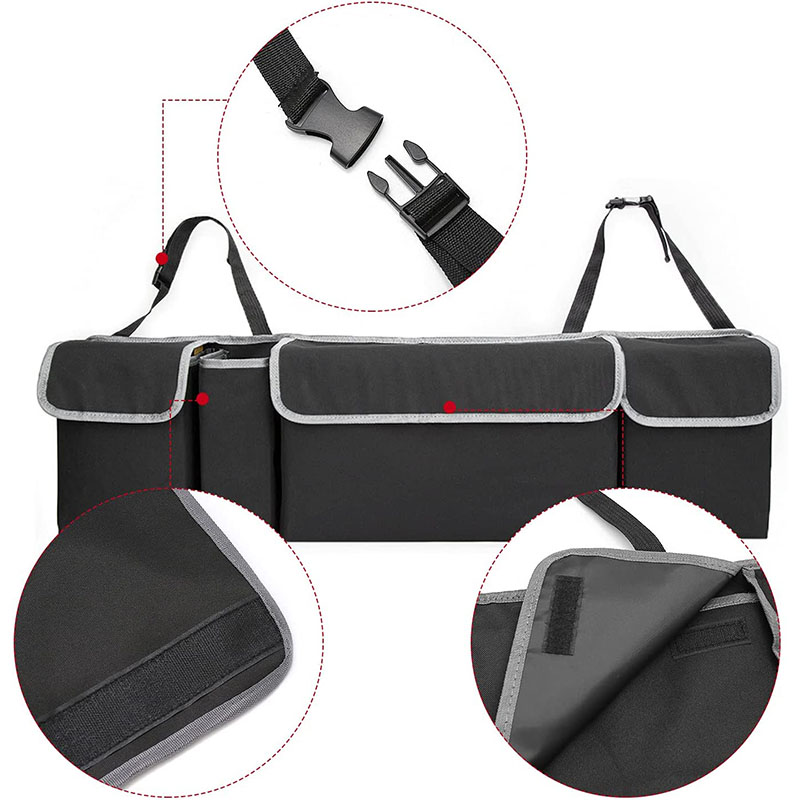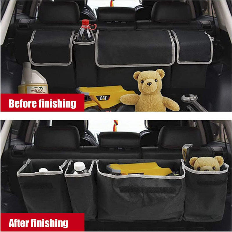 Casa / Prodotti / Borsa dell'organizzatore / Organizzatore di auto / Organizer multifunzionale per sedile posteriore per auto, grande, nero, personalizzato, con maniglie