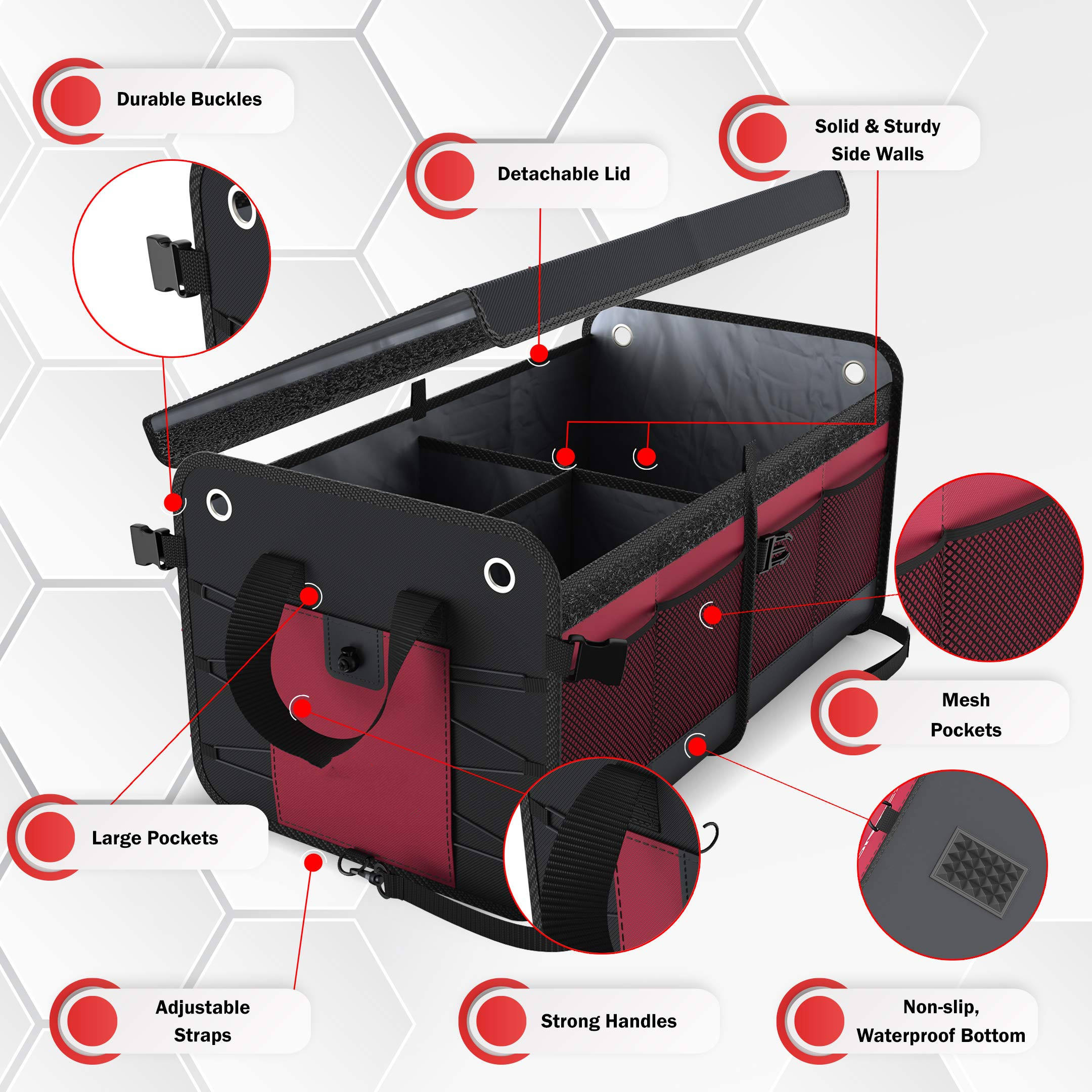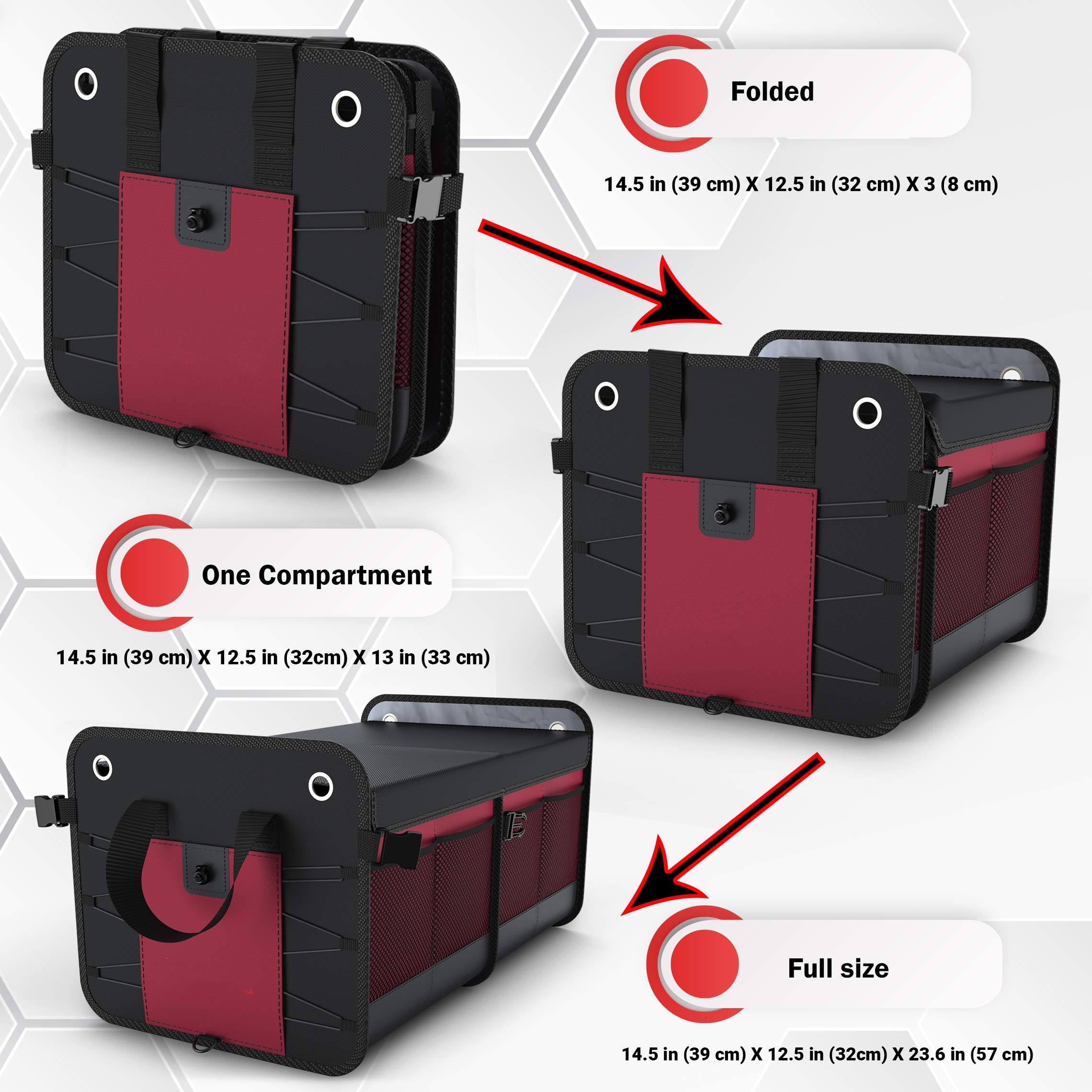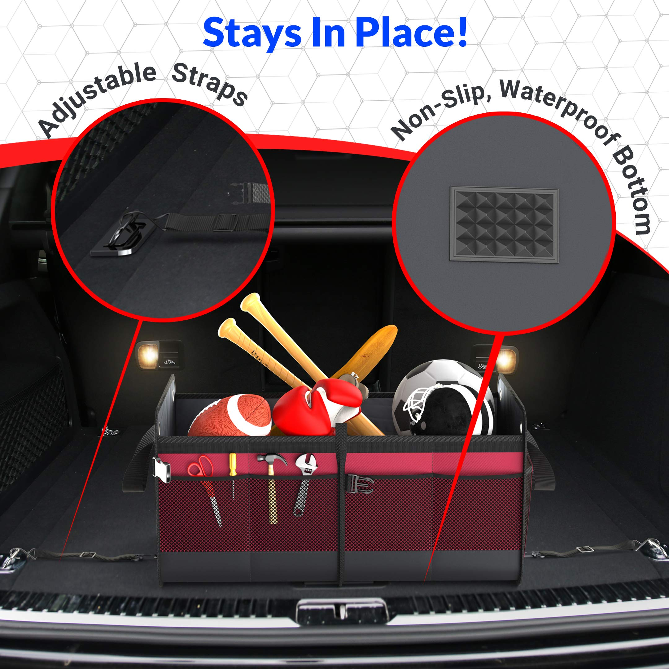 Organizer pieghevole per bagagliaio con manici rinforzati, adatto a qualsiasi auto