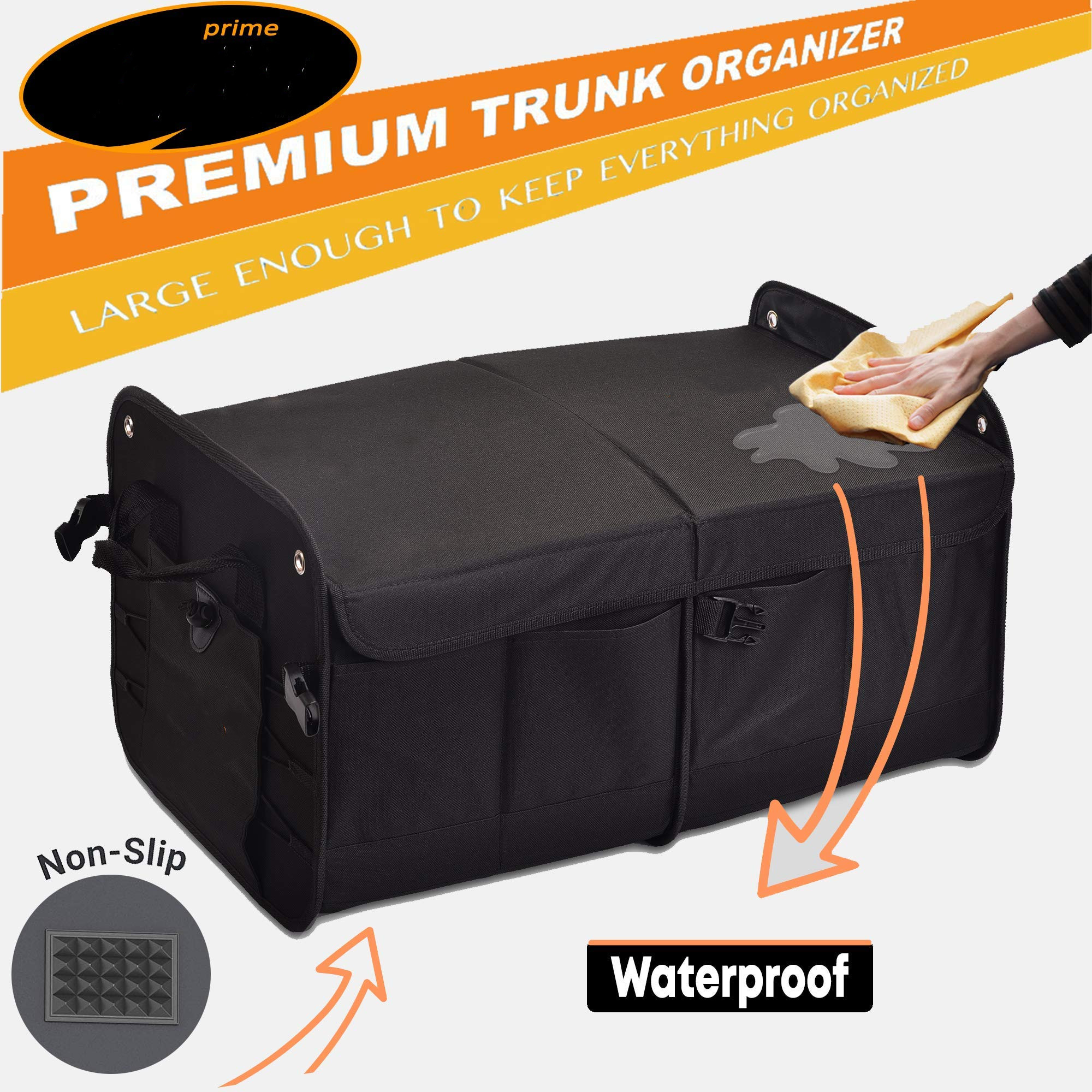 Organizer pieghevole per bagagliaio e sedile posteriore Prime, organizer per bagagliaio con cinghie regolabili per qualsiasi auto, berlina e SUV