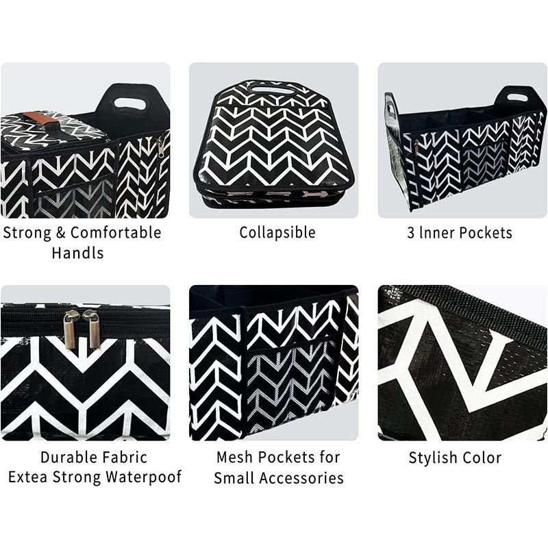 Scatola portaoggetti multifunzionale per bagagliaio per auto con logo personalizzato nero pieghevole con maniglia per auto