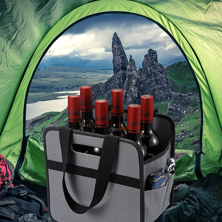 | Pieghevole impermeabile 6 bottiglie di vino Carry Tote Bag Travel Camping Portable Beer Can Bag Piccolo organizzatore per auto | ||