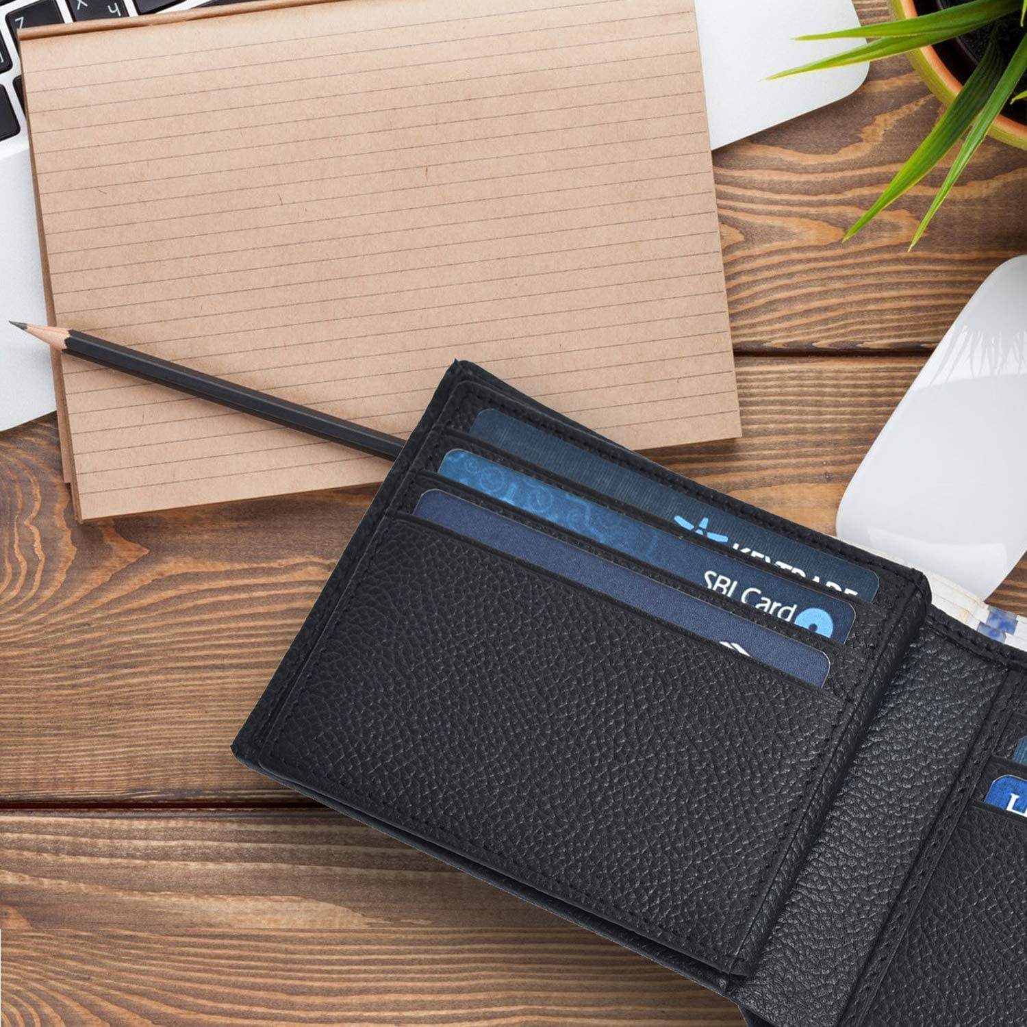 Portafoglio minimalista in pelle per carte sottili, portafoglio per biglietti da visita con blocco RFID personalizzato per uomo
