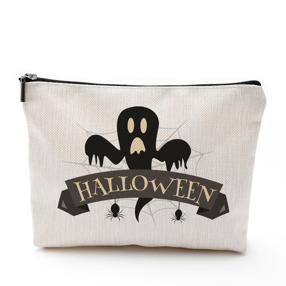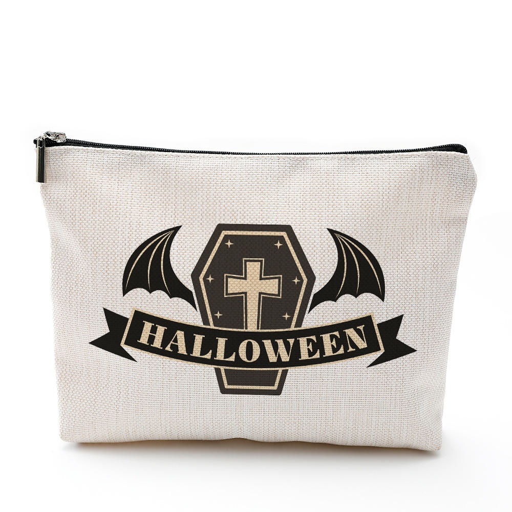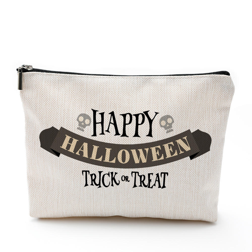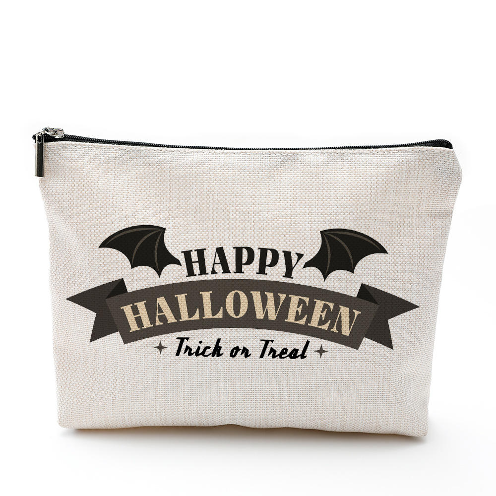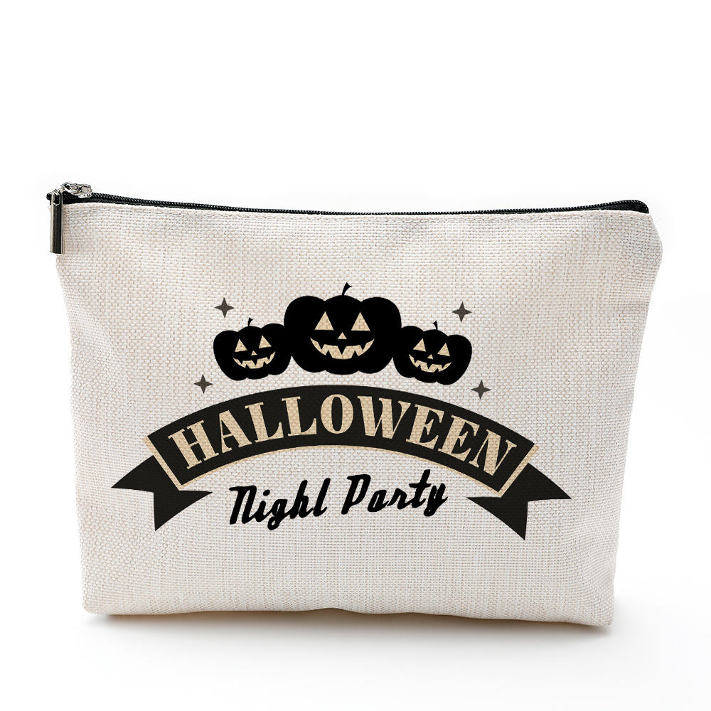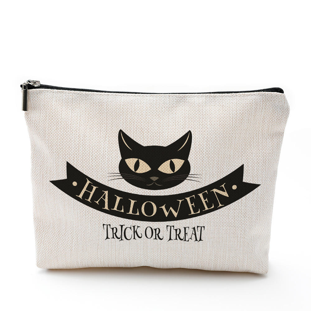 | Pretty Cartoon Printing Flax Halloween Makeup Bag Portable Travel Cosmetic Pouch Zipper Bag | ||
