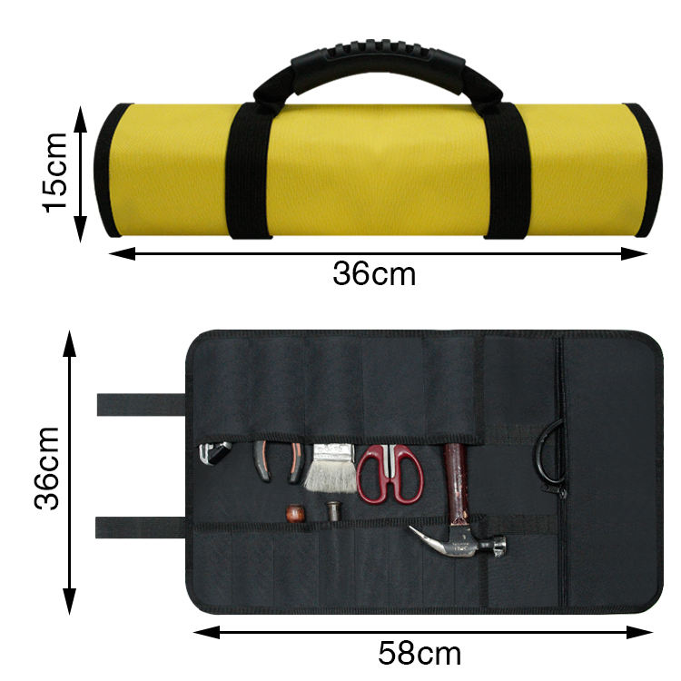 | Nome | Rotolo avvolgente per attrezzi da appendere per impieghi gravosi con scomparti con cerniera per borsa porta attrezzi in tela | ||||||