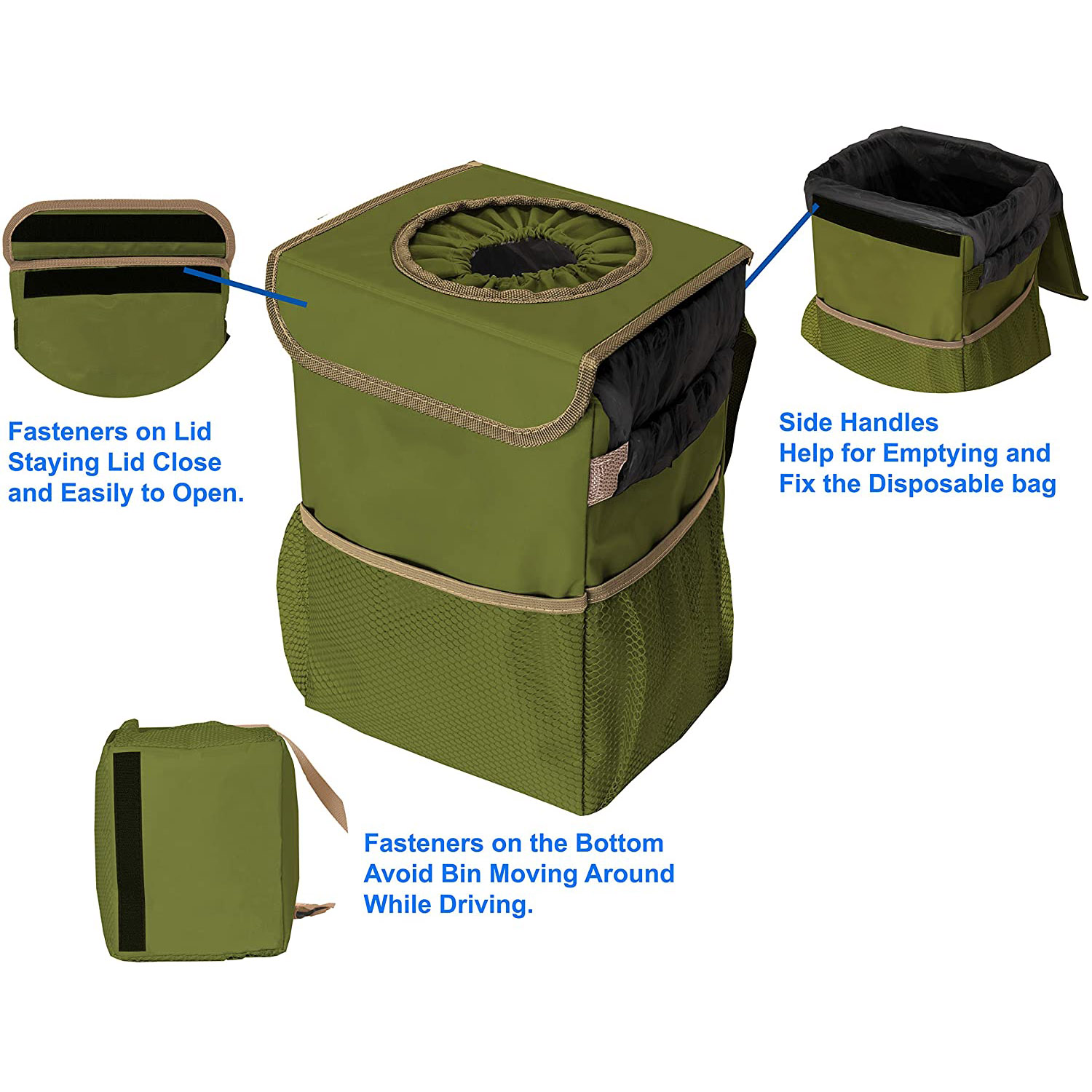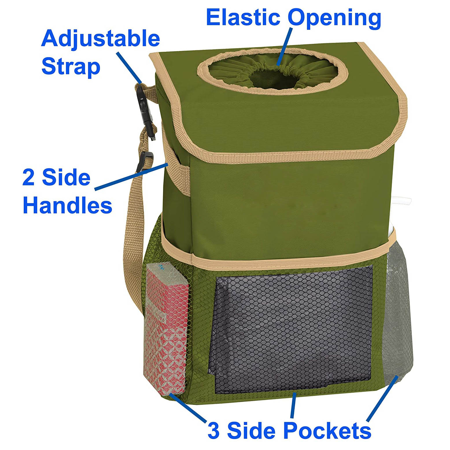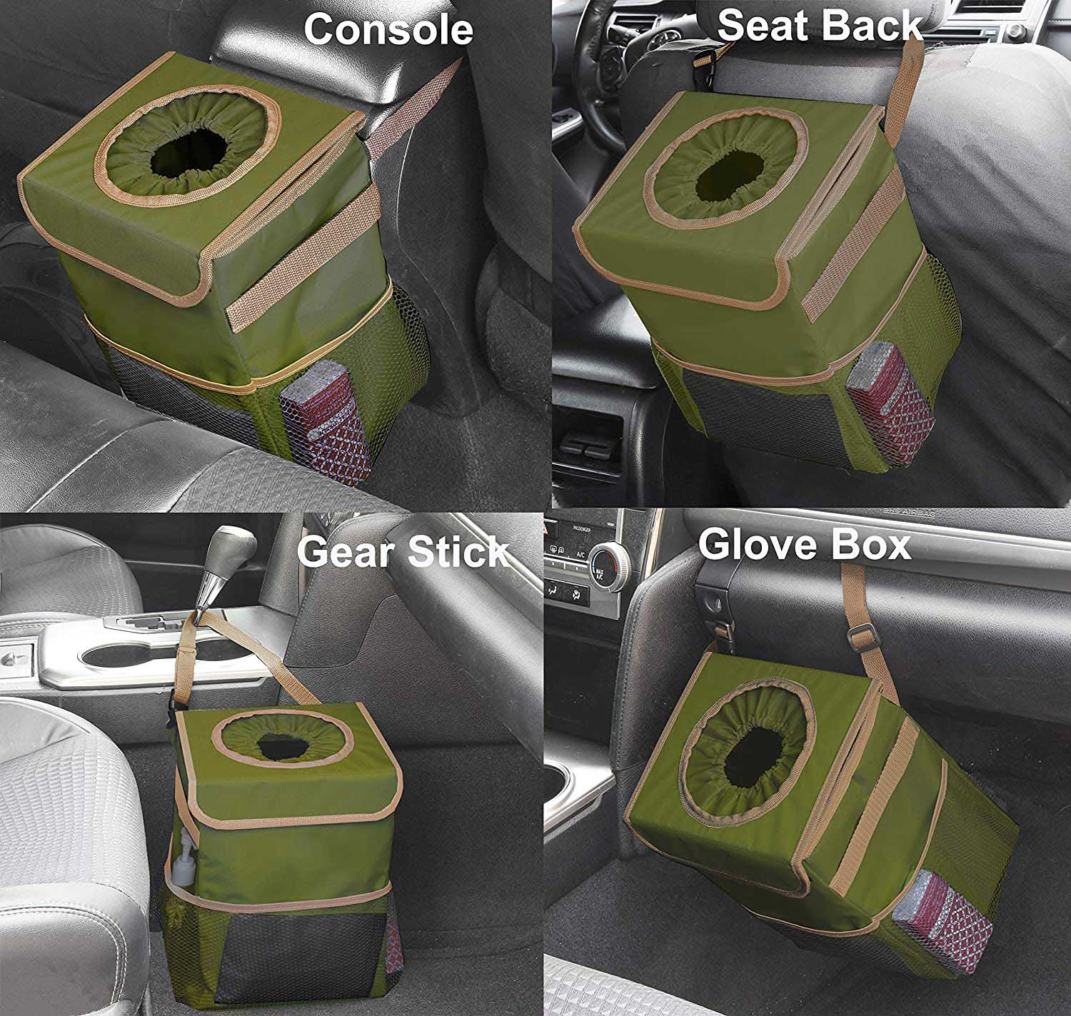 | Borsa per la spazzatura portatile per auto SUV sul sedile posteriore Borsa per la spazzatura sospesa riutilizzabile a prova di perdite con coperchio e tasche portaoggetti | ||