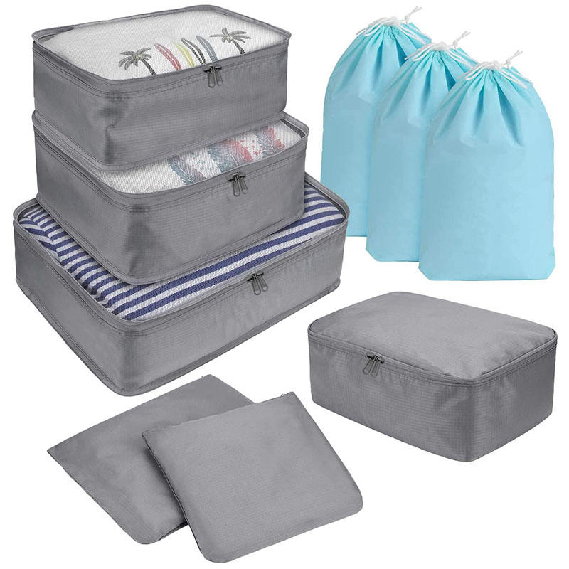 Casa / Prodotti / Borsa da viaggio / Organizzatore di viaggi / Set da 9 pezzi organizer da viaggio per biancheria da viaggio a compressione borsa valigia in tessuto cubetti di imballaggio portatili organizer per bagagli da viaggio