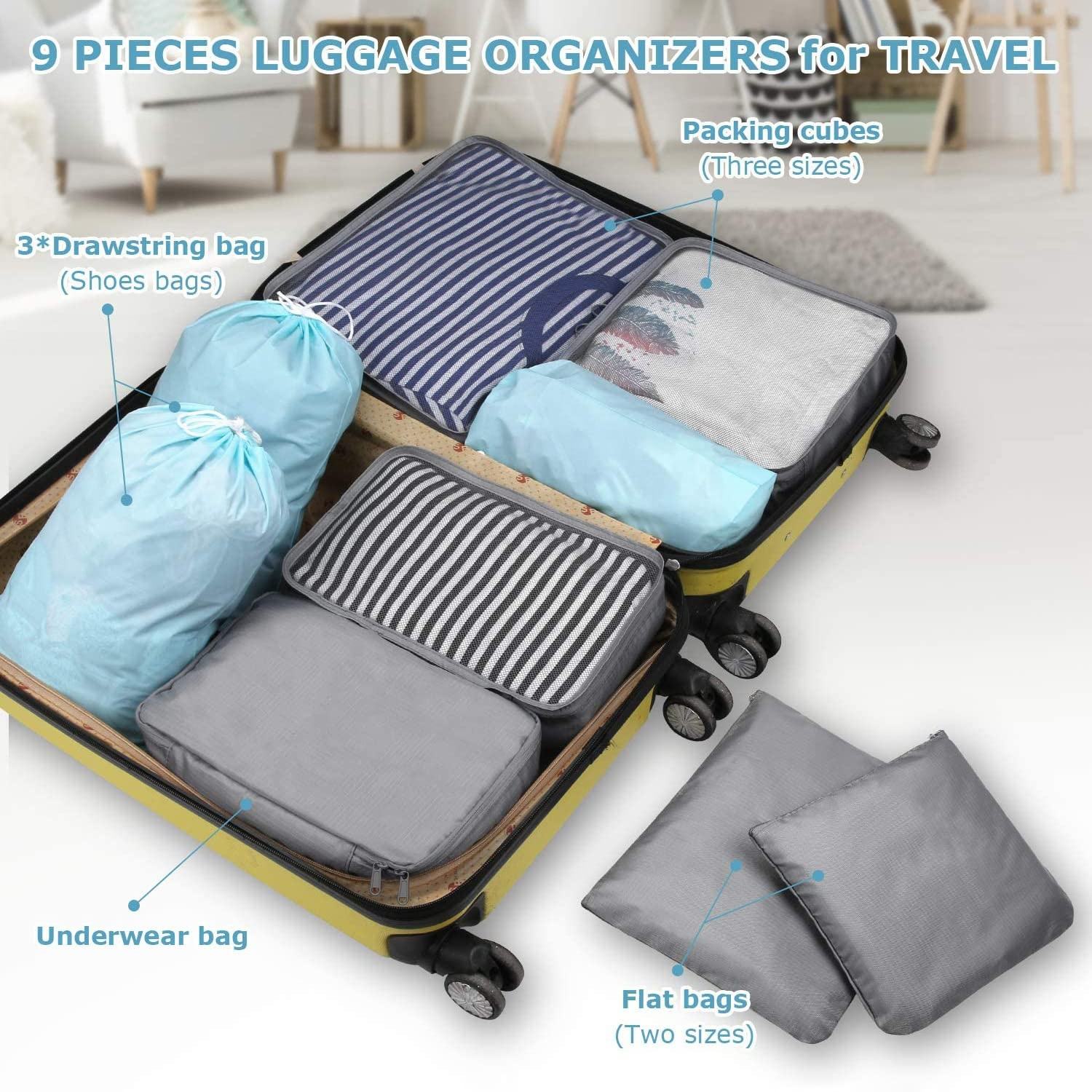Set da 9 pezzi organizer da viaggio per biancheria da viaggio a compressione borsa valigia in tessuto cubetti di imballaggio portatili organizer per bagagli da viaggio