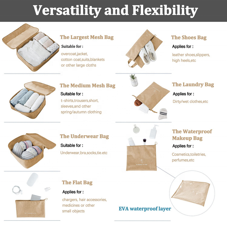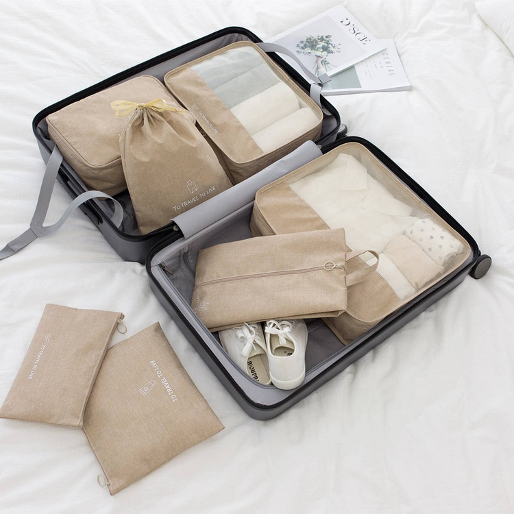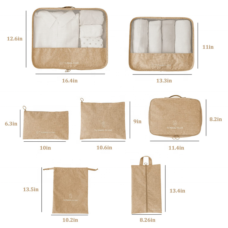 Casa / Prodotti / Borsa da viaggio / Cubi da viaggio / Set di borse per organizer per bagagli in tessuto riciclato Escursionismo da viaggio Stoccaggio di stoffa per esterni Lady Men Cubi di imballaggio in RPET