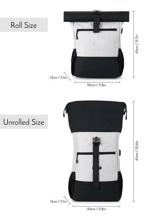 | Articolo | Zaino arrotolabile in rpet resistente di buon design con porta di ricarica USB |