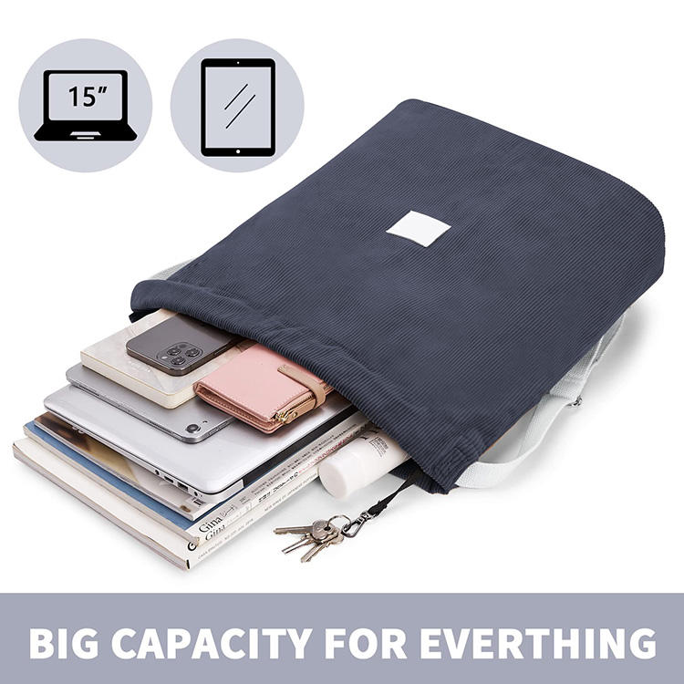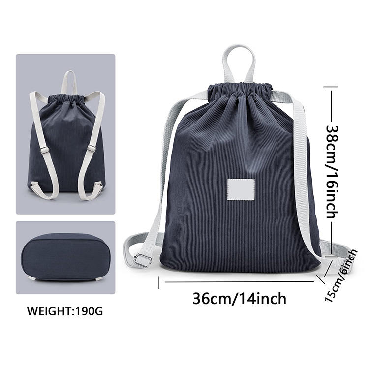 | Zaino con coulisse in tessuto di velluto a coste spesso alla moda Zaino sportivo quotidiano con logo personalizzato per ragazze e donne | ||