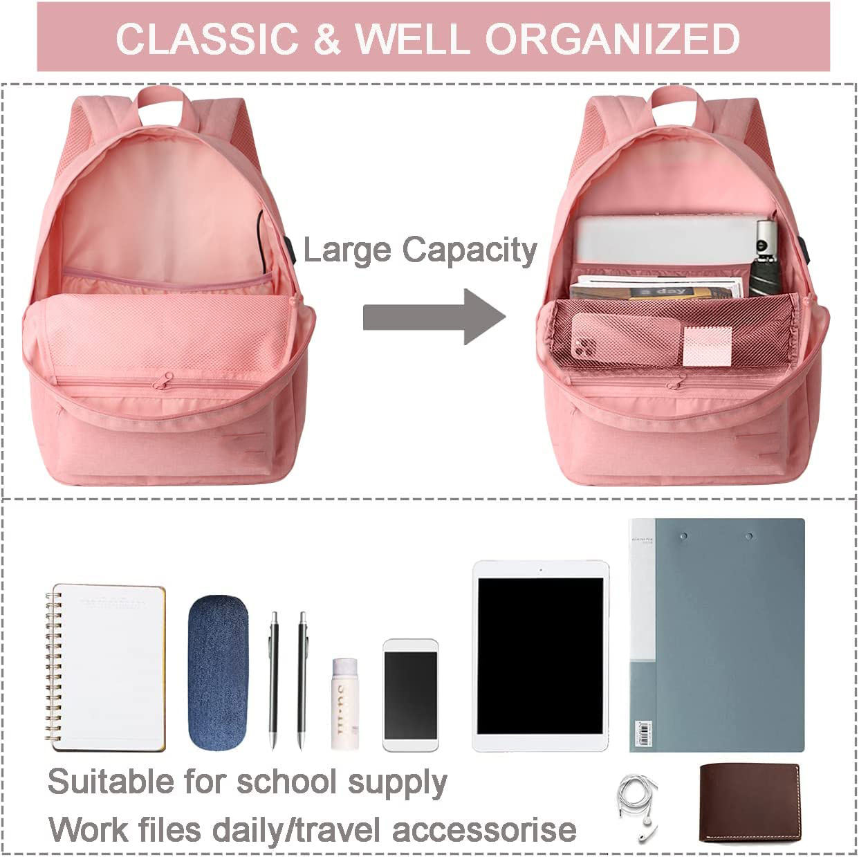 Casa / Prodotti / Zaino / Zaino per computer portatile / Zaino per laptop da viaggio scolastico casual carino resistente all'acqua classico ed elegante
