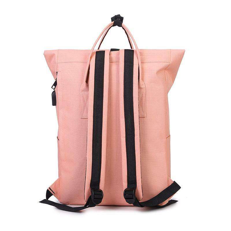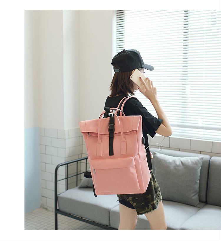 Zaino rolltop in rpet riciclato rosa zaino da viaggio arrotolabile alla moda con ricarica USB