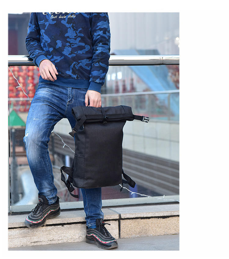 | Roll top zaino per laptop vintage trolley scuola zaino in poliestere roll up zaino zaini per uomo | ||